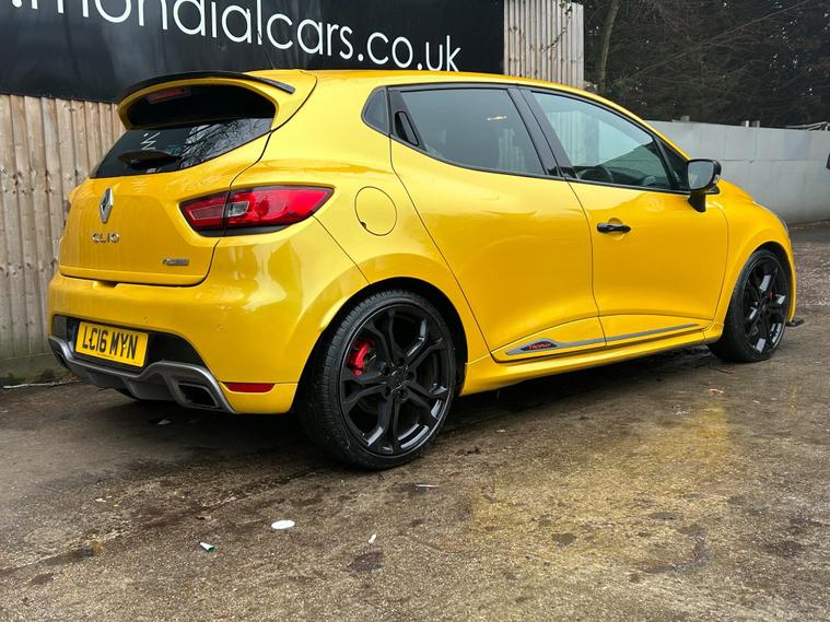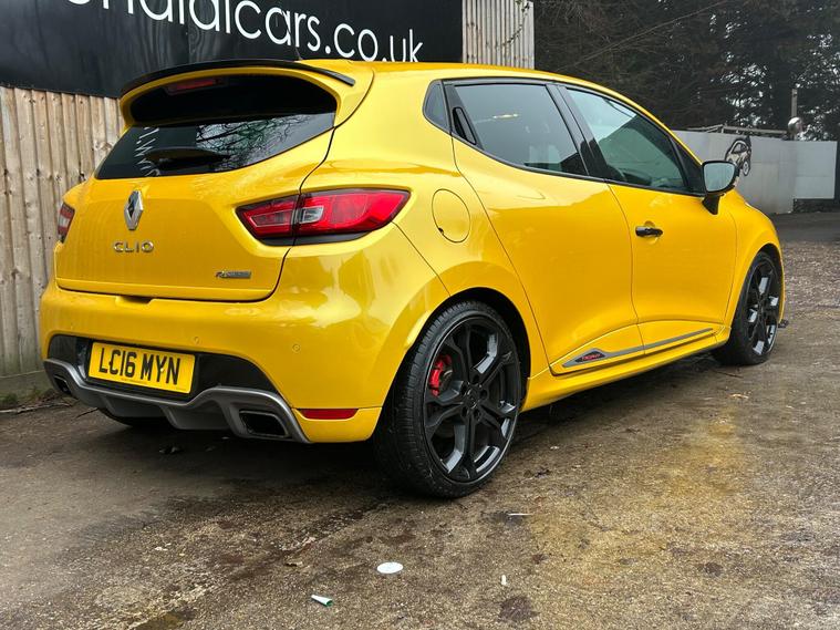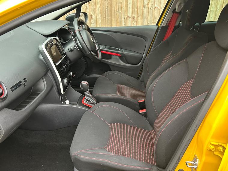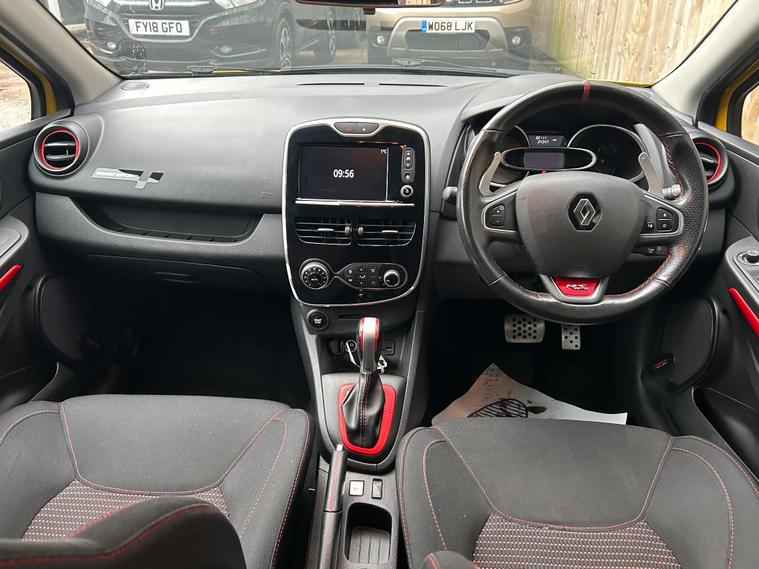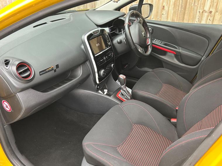 This 2016 Renault Clio TCe Renaultsport Nav Trophy offers an exhilarating driving experience with its impressive performance. This Euro 6 compliant model boasts a potent 1.6L petrol engine, delivering a swift 0-62mph acceleration in just 6.6 seconds. The Renaultsport Nav Trophy trim comes equipped with a suite of convenient features, including a rear parking camera and body coloured rear parking sensors to aid manoeuvrability. Enjoy effortless entry and ignition with the handsfree keycard and push button start stop function, while the automatic climate control with one touch demist and air quality regulator ensures a comfortable cabin environment.The R Link multimedia system, complete with Bluetooth connectivity and integrated rear camera, keeps you connected and informed on every journey. These advanced features, combined with the Clio's sporty credentials, demonstrate how this particular vehicle stands out from others in its class. Its dynamic capabilities and thoughtful technology make it a compelling choice for those seeking both performance and practicality..