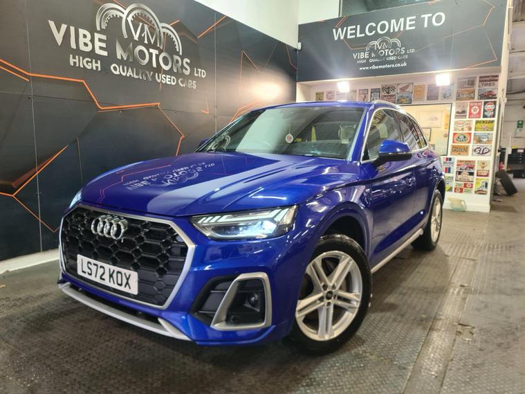 HPI clear, recent service, 2 keys, Low Rate Finance Available, We offer great prices for your Part Exchange, Any Inspection welcome, delivery can be arranged, 3 to 48 months warranty available subject to terms and condition, 12 Months AA Breakdown included, temporary drive away Insurance can be arranged, Gearbox & Engine in Excellent ConditionThis 2023 Audi Q5 TFSIe S line presents a unique opportunity, having had only one owner from new and boasting a clear vehicle history check. This premium SUV combines a powerful 2.0 litre petrol plug in hybrid engine with a sophisticated four wheel drive system, all meeting the Euro 6 emission standards. The S line trim enhances its sporty appeal, complemented by a rear spoiler and dynamic suspension for an engaging driving experience. For convenient charging, it includes both a 3 pin 10 amp domestic charging cable and a Type 2 Mode 3 32 amp charging cable, along with a Type 2 socket for AC charging.Experience exhilarating performance with the Q5 TFSIe S line, capable of accelerating from 0 to 62 miles per hour in just 6.1 seconds. This impressive acceleration, combined with its plug in hybrid technology and four wheel drive, sets it apart from other vehicles in its class, offering a blend of efficiency and dynamic capability. The inclusion of advanced charging solutions ensures you can easily integrate electric driving into your daily routine, making this Audi Q5 a compelling choice for those seeking a refined and capable SUV..