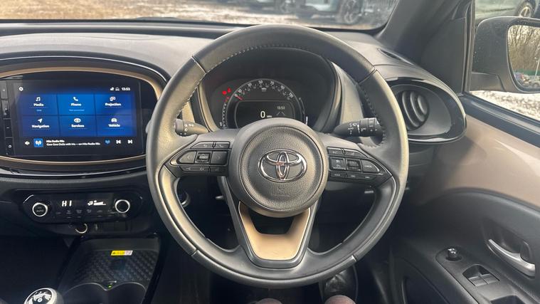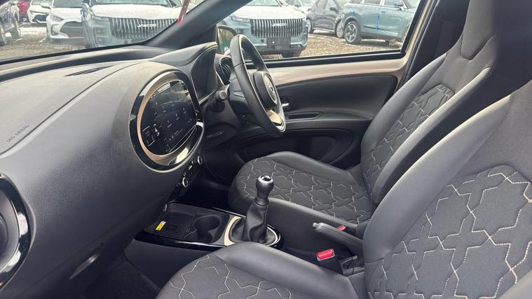 This 2023 Toyota Aygo X VVT-i Exclusive is a Toyota manufacturer approved vehicle with a full service history and only one owner from new, offering you complete peace of mind. This stylish hatchback features a 1.0L Petrol Engine, meeting Euro 6 emissions standards. Inside, you'll find Automatic Air Conditioning with Climate Control, Smart Entry and Start for effortless access, and a Wireless Mobile Phone Charger. The Exclusive trim also includes a Parking Pack with front and rear sensors for easier manoeuvring, and the advanced Toyota Safety Sense suite, which incorporates Adaptive Cruise Control.The Aygo X Exclusive is designed to be economical and efficient, boasting an impressive fuel economy of 57 mpg. Its low CO2 emissions and low insurance group further highlight how this vehicle offers a more cost effective ownership experience compared to similar cars. This particular example comes with a 12 month warranty, ensuring your investment is protected..