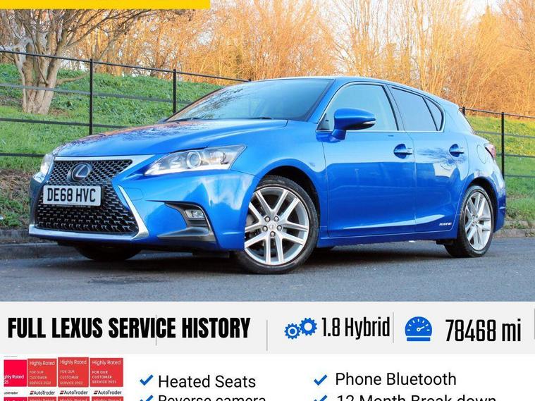 chans cars ltd is pleased to present yourself with this outstanding 2018 Lexus CT 1.8 200h Luxury Hatchback 5dr Petrol Hybrid CVT With 78468 Miles, FULL Lexus Service History, 1 Previous Owners .you can be confident this car is in great condition With the Service History, MOT Until 26/09/2026 .There are many Great features in this car like Heater Seats, Sat-Nav, Reverse Parking Camera, Front and rear parking sensors, ECO And Sports Mode Driving , The Blue Tooth , lane Assist. We really do care about our customers & in recognition To That we have Received Autotrader ''customer choice Award'' For 6 Years. We Strive to deliver the best possible customer experience, but don’t take our words for it, read our 229 + great reviews! We present our cars to You with High Standard Preparations. Our commitments to Price And working With Autotrader Means Our Stocks Are Monitored Daily and All Priced At ''Good”, “Great'' Price. For yours & our Peace of Mind all our cars Are Pre-Inspected And necessary vehicle data checks are Checked.