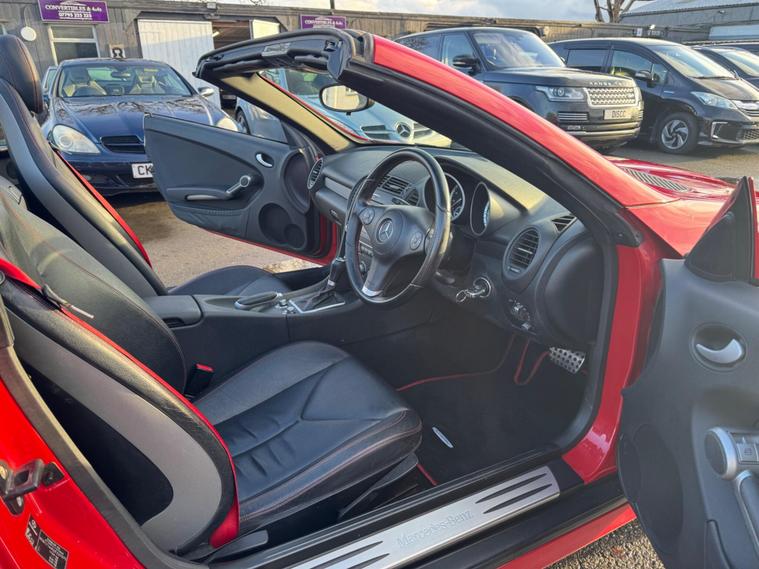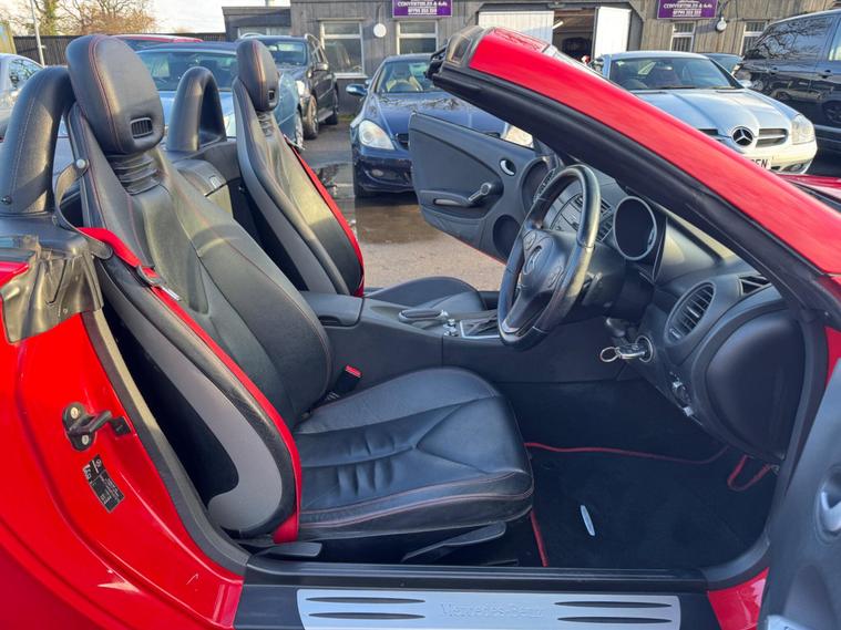 CHOICE OF 4 SLK'S 2 FACELIFT SLK W 171 THE OTHER CAR ONE OF THE LATER SHAPE MODEL A W172 MODEL 62 REG 43K SILVER BLACK HEATED LEATHER WITH AIR-SCARF £9000..00 THIS Mercedes-Benz SLK 1.8 SLK200K Tiptronic FULLY AUTOMATIC Euro 4 2dr POWER ROOF CONVERTIBLE IT LOOKS AMAZING IN THE BEST COLOUR FERRARI RED METALLIC CONTRASTING BLACK LEATHER HEATED SEATS WITH AIR-SCARF (NECK LEVEL HEATING) AND ALUMINIUM TRIM TO THE DASH AND DOOR CARDS YES VERY SMART. THE LAST LADY OWNER HAS LOVED AND CHERISHED THE CABRIOLET FOR YEARS & YOU CAN TELL THAT BY THE SUPERB CONDITION THE IS IN YES AND IT'S REALLY GOOD MILEAGE FOR THE YEAR 75K WITH A GOOD PART SERVICE HISTORY. THE ROADSTER HAS A POWER CONVERTIBLE SUNROOF, FACTORY TELEPHONE BLUETOOTH TELEPHONE CONNECTION, AIR SCARF, STEREO RADIO/CD-PLAYER, REMOTE CONTROL CENTRAL LOCKING SYSTEM, 18'' UPGRADED AMG ALLOY WHEELS WITH GOOD TYRES.This 2010 Mercedes Benz SLK200K offers a refined driving experience with its 1.8 litre petrol engine. This model comes equipped with Auto Climate Control, ensuring a comfortable cabin temperature in all conditions, and a Bluetooth System for seamless connectivity on the go. The SLK200K stands out with its combination of efficient performance and desirable features. The inclusion of Auto Climate Control and Bluetooth highlights its thoughtful design, providing a more enjoyable and convenient journey compared to other vehicles in its class..