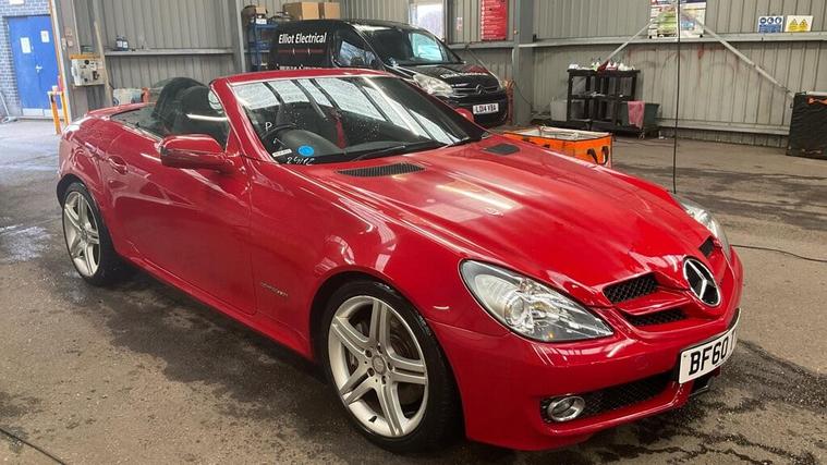 A FULL AND BETTER SET OF PHOTOS AS SOON AS IT ARRIVES IN THE NEXT DAY OR SO FROM THE MERCEDES MAIN DEALERSHIP. A CHOICE OF 4 SLK'S 2 FACELIFT SLK W 171 THE OTHER CAR ONE OF THE LATER SHAPE MODEL A W172 MODEL 62 REG 43K SILVER BLACK HEATED LEATHER WITH AIR-SCARF £9000..00 THIS Mercedes-Benz SLK 1.8 SLK200K Tiptronic FULLY AUTOMATIC Euro 4 2dr POWER ROOF CONVERTIBLE IT LOOKS AMAZING IN THE BEST COLOUR FERRARI RED METALLIC CONTRASTING BLACK LEATHER HEATED SEATS WITH AIR-SCARF (NECK LEVEL HEATING) AND ALUMINIUM TRIM TO THE DASH AND DOOR CARDS YES VERY SMART. THE LAST LADY OWNER HAS LOVED AND CHERISHED THE CABRIOLET FOR YEARS & YOU CAN TELL THAT BY THE SUPERB CONDITION THE IS IN YES AND IT'S REALLY GOOD MILEAGE FOR THE YEAR 75K WITH A GOOD PART SERVICE HISTORY. THE ROADSTER HAS A POWER CONVERTIBLE SUNROOF, FACTORY TELEPHONE BLUETOOTH TELEPHONE CONNECTION, AIR SCARF, STEREO RADIO/CD-PLAYER, REMOTE CONTROL CENTRAL LOCKING SYSTEM, 18'' UPGRADED AMG ALLOY WHEELS WITH GOOD TYRES.This 2010 Mercedes Benz SLK200K offers a refined driving experience with its 1.8 litre petrol engine. This model comes equipped with Auto Climate Control, ensuring a comfortable cabin temperature in all conditions, and a Bluetooth System for seamless connectivity on the go. The SLK200K stands out with its combination of efficient performance and desirable features. The inclusion of Auto Climate Control and Bluetooth highlights its thoughtful design, providing a more enjoyable and convenient journey compared to other vehicles in its class..