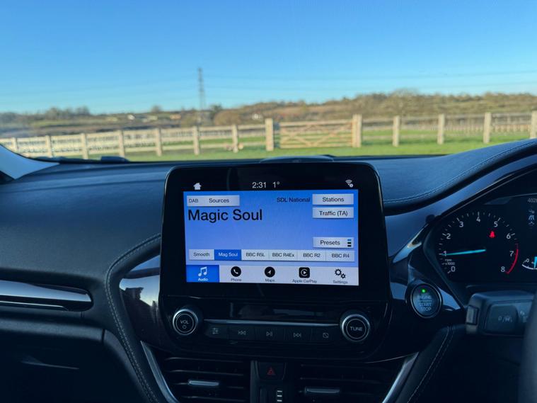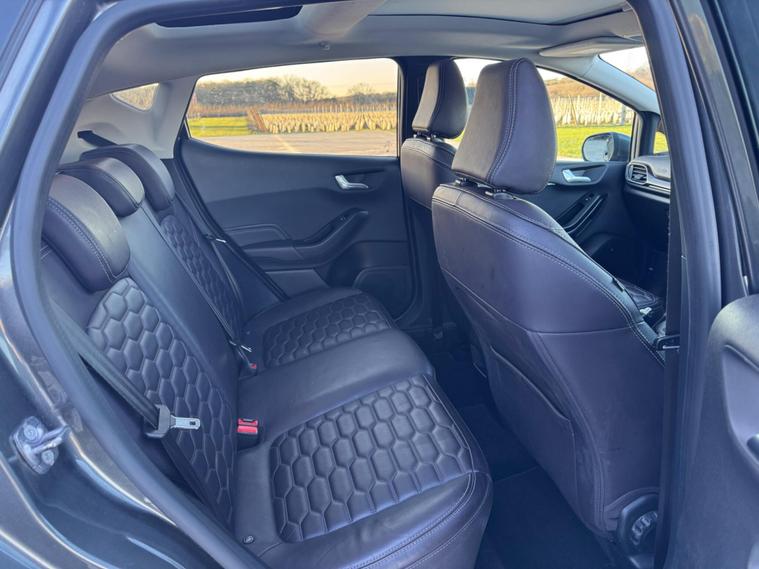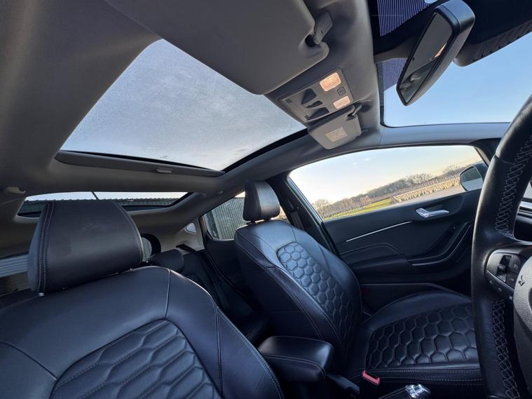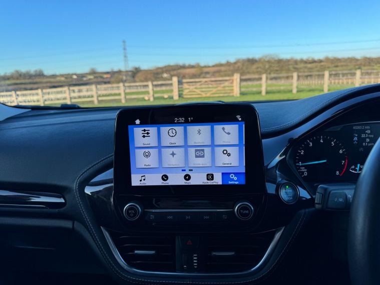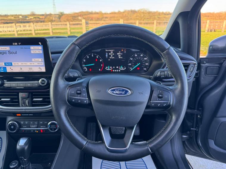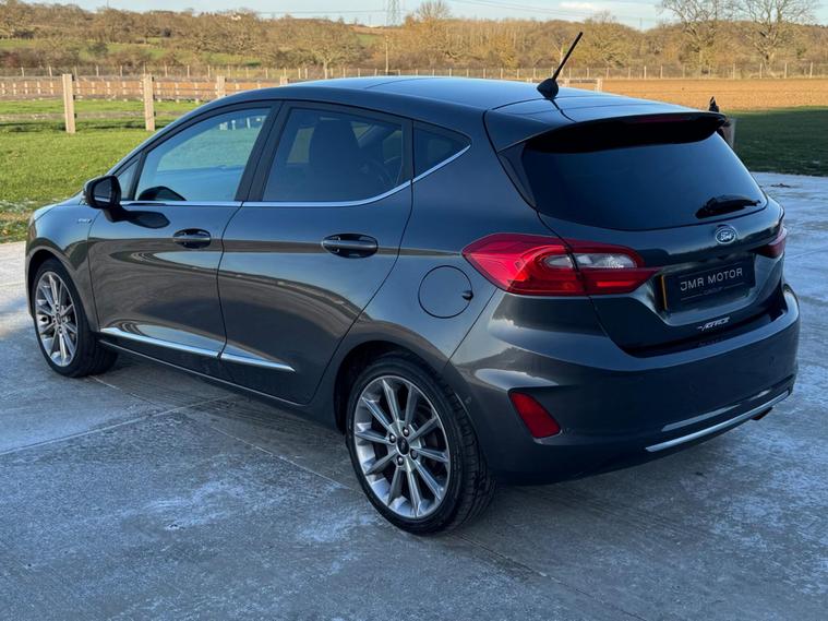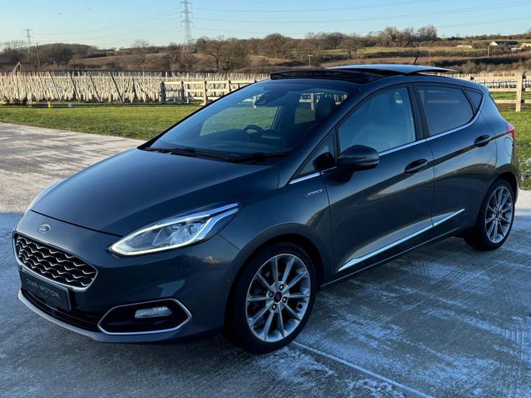 This Stunning Ford Fiesta 1.0T Vignale Auto is beautifully presented in metallic grey with 17-inch alloy wheels. Inside is spacious, stylish and modern with an 8-inch colour touch screen display. DAB Radio, B&O Sound System, Bluetooth, Dual A/C Climate Control, Front heated seats, Heated steering wheel, Heated front windscreen, Opening panoramic roof, Reverse parking camera with parking sensors, Cruise control, SATNAV, AppleCarPlay + Android Auto it is a perfectly well kept hatchback with just two previous owners. This Stunning vehicle comes with full service history, 12 months MOT and 3 Months warranty. 2 KEYS and is ULEZ COMPLIANT. HPI CLEAR and Fianance Available.