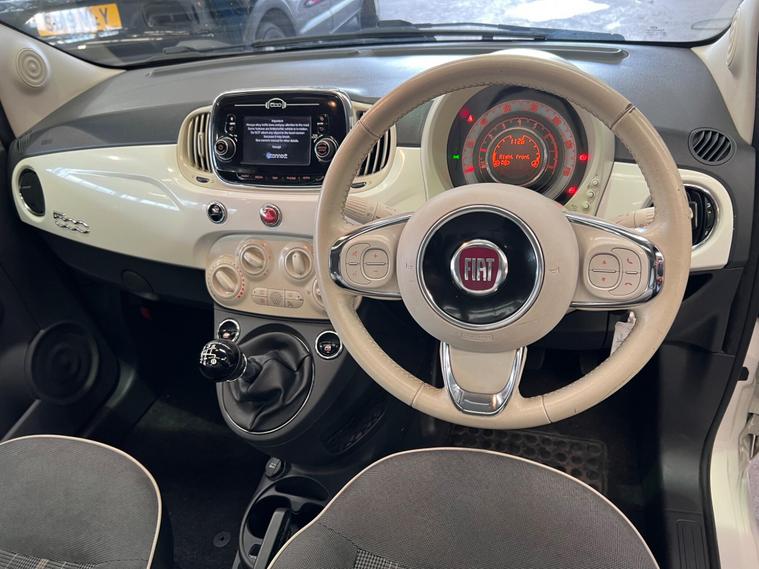 This 2016 Fiat 500 Lounge is a fantastic example of a well maintained city car. Powered by a 1.2 litre petrol engine, this Euro 6 compliant model offers an impressive fuel economy of up to 60 miles per gallon. The Lounge trim level brings with it a host of desirable features, including front seats with memory function for personalised comfort, and a fixed glass roof with a sunblind to brighten your journeys. For added convenience, it is equipped with rear parking sensors and air conditioning, ensuring a comfortable and stress free driving experience.Further enhancing its appeal, this Fiat 500 boasts a 5 inch touchscreen radio complete with AUX, USB, DAB, and Bluetooth connectivity, keeping you entertained and connected on the go. Its low CO2 emissions and low insurance group rating indicate that this vehicle is more economical to run and insure than many other cars in its class. This combination of style, practicality, and cost effectiveness makes it an excellent choice for navigating urban environments..