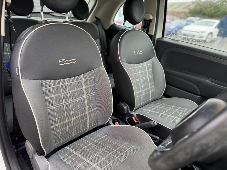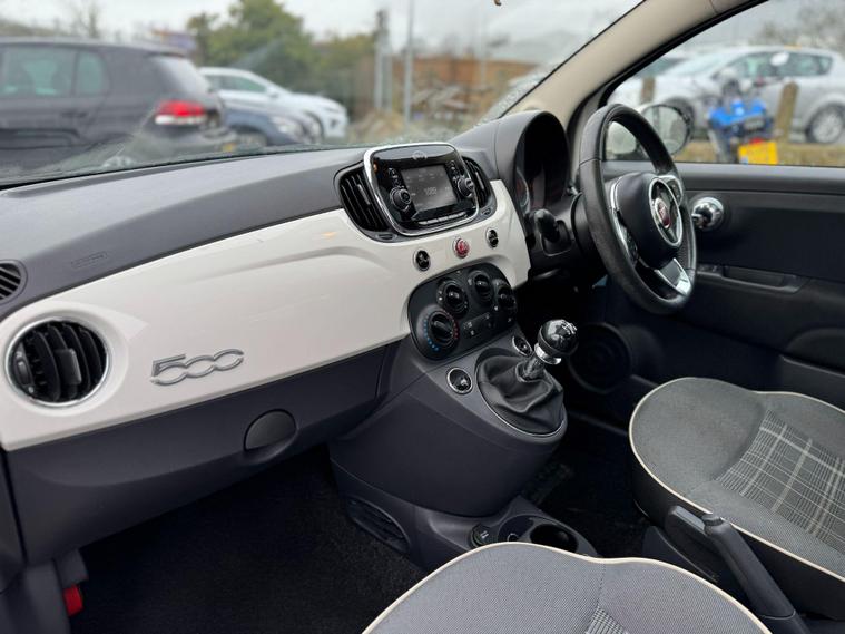 This 2016 Fiat 500 Lounge boasts exceptionally low mileage for its age, having covered just 34, 579 miles. This popular city car is presented in the desirable Lounge trim and features a fuel efficient 1.2 litre petrol engine, meeting Euro 6 emissions standards. A clear vehicle history check provides peace of mind, and the car is equipped with a 5 inch touchscreen radio offering DAB, Bluetooth, AUX and USB connectivity. Enjoy the light and airy cabin with its fixed glass roof and sunblind, and appreciate the convenience of front seats with memory function, air conditioning, and rear parking sensors.The highlights of this Fiat 500 Lounge demonstrate its excellent value. With an impressive fuel economy of 60 mpg, it offers significantly lower running costs compared to many other vehicles in its class. Furthermore, its low insurance group and low CO2 emissions mean that ownership is both economical and environmentally considerate, making it a smart choice for everyday driving..