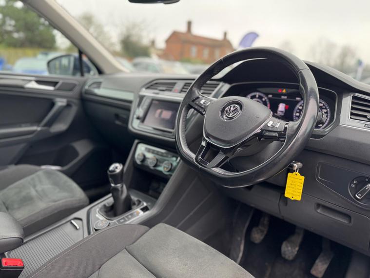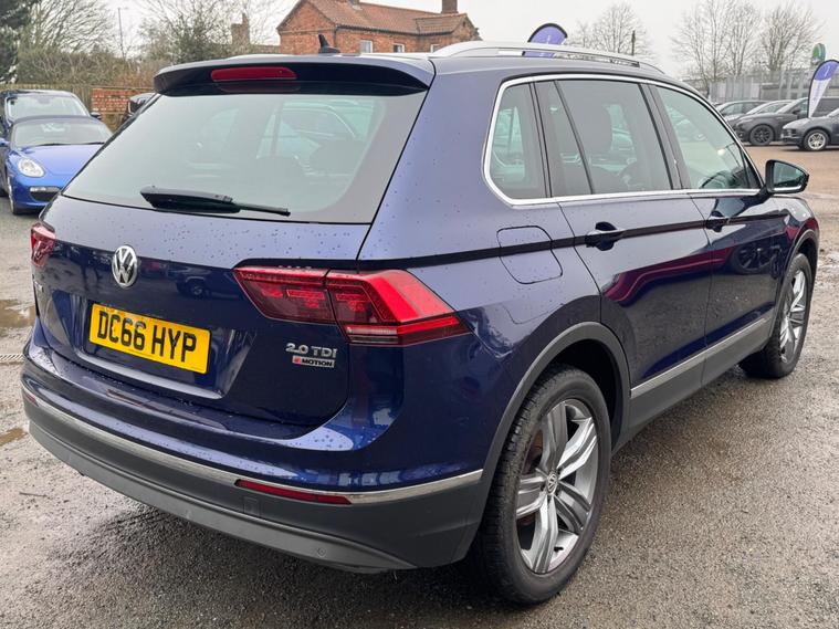This Volkswagen Tiguan TDI SEL from 2016 boasts a clear vehicle history and has had only two owners, offering you peace of mind. Powered by a 2.0 litre diesel engine and featuring four wheel drive, this Euro 6 compliant model is equipped for various conditions. Its SEL trim includes a rotary switch by the gear stick allowing for onroad, offroad, snow, and offroad individual driving modes, alongside driver profile selection with eco, normal, and sport settings. You'll also benefit from front and rear parking sensors with parking assistance, adaptive cruise control, and automatic headlamp activation with daytime running lights and coming home features.This Tiguan stands out with its impressive 52 mpg fuel economy, indicating it is more economical than many similar vehicles. Its low insurance group further enhances its appeal as a cost effective choice. With a substantial towing weight of 2200 kg and generous boot space, this versatile SUV is well suited for both everyday journeys and more adventurous trips, making it a practical and capable option..