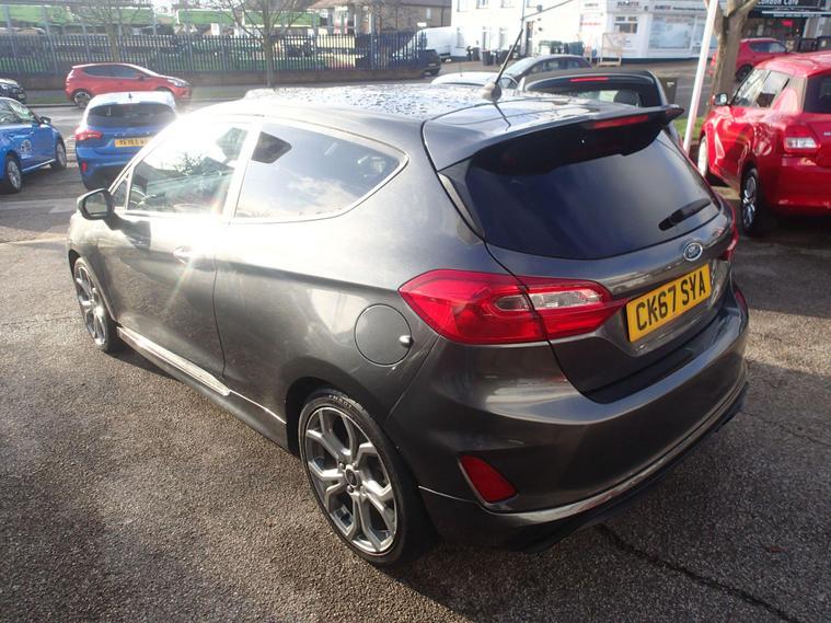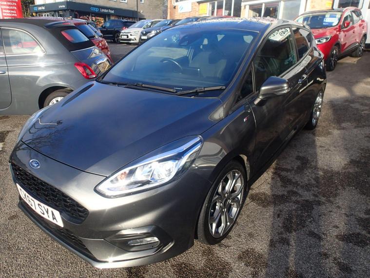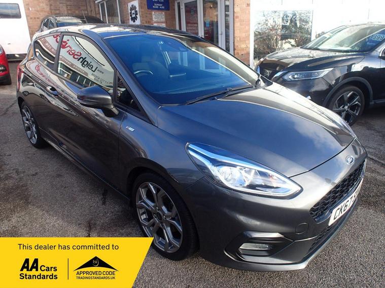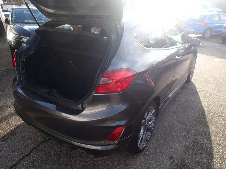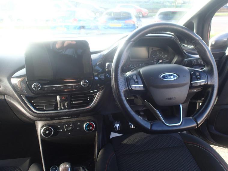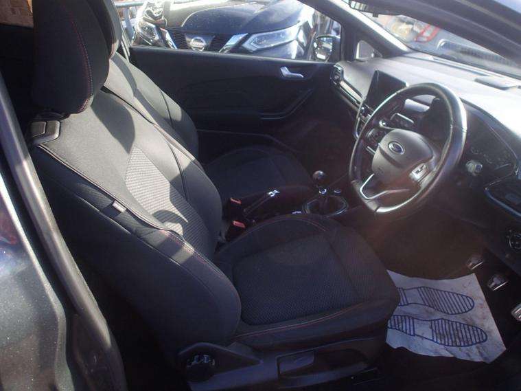 This 2018 Ford Fiesta ST Line offers a compelling blend of style and technology, making it a standout choice in its class. Powered by an efficient 1.0L petrol engine, this Euro 6 compliant model delivers an impressive fuel economy of 59 mpg, alongside low CO2 emissions. The ST Line trim ensures a sporty aesthetic, while notable features include automatic on-off headlights for convenience and safety. Inside, you'll find the Ford DAB Radio with Ford SYNC 3, seamlessly integrating Apple CarPlay and Android Auto for effortless connectivity. The NCAP Pack further enhances safety, and manual air conditioning ensures a comfortable cabin environment.Experience the responsive performance of this Fiesta, accelerating from 0-62mph in just 10.6 seconds. These highlights demonstrate how this particular Ford Fiesta ST Line offers a superior driving experience compared to other vehicles in its segment. Its combination of economical running costs, modern technology, and engaging performance makes it an excellent option for those seeking a practical yet enjoyable car..