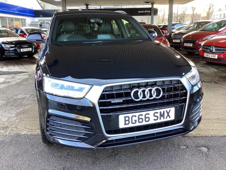 SERVICE HISTORY **READ OUR HONEST CUSTOMER 5 STAR REVIEWS ON GOOGLE, YOU'LL BE PLEASED YOU CHOSE US** PRICED AT THE ''BUY IT NOW PRICE'' SAVE £100'S!!! Boasting exceptionally low mileage for its age, this 2016 Audi Q3 TDI S line Plus presents a superb opportunity. This four wheel drive model, powered by a 2.0 litre Euro 6 diesel engine, comes in the desirable S line Plus trim. It features a Bluetooth interface for mobile telephone preparation, dual zone electronic climate control to keep everyone comfortable, and all weather LED headlights with automatic activation for enhanced visibility. Parking is made easier with rear parking sensors.With a remarkable fuel economy of 50 miles per gallon and a swift 0 to 60 miles per hour acceleration in just 7.6 seconds, this Audi Q3 offers an impressive blend of efficiency and performance that sets it apart from other vehicles in its class. The very low mileage of 56, 000 miles further underscores its excellent condition and value..