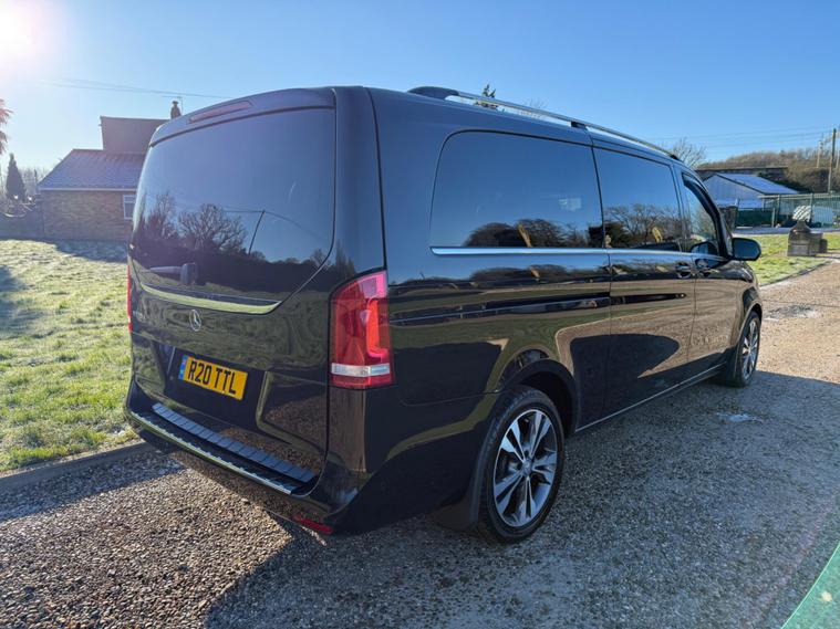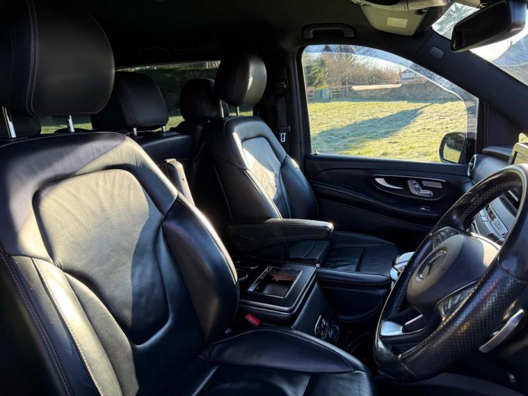 THIS BEAUTIFUL VERY RARE EXTRA LONG WHEEL BASE V CLASS, PRIVATELY OWNED, NOT A TAXI, AN ABSOLUTE BEAUTY IN BLACK WITH FULL BLACK LEATHER, 8 SEATS, AUTOMATIC G TRONIC, SAT NAV, REVERSE CAMERA WITH 360 DEGREE, PARKING SENSORS, ALLOYS, ELECTRIC TAILGATE, ELECTRIC SIDE DOORS, PRIVACY GLASS, AUTO LIGHTS AND WIPERS, AUTO XENON LIGHTS, DAB RADIO, BLUETOOTH, WILL COME FULLY SERVICED AND 3 MONTHS WARRANTY INCLUDED.