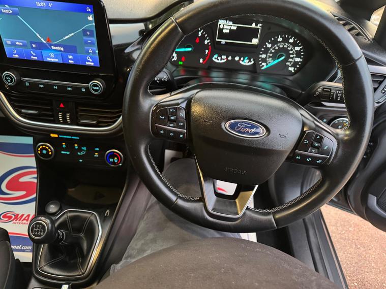 This 2021 Ford Fiesta T Titanium presents an exceptional opportunity with its remarkably low mileage of just 26, 751 miles, backed by a full service history and an MOT valid until January 2027. This Euro 6 compliant 1.0L petrol model boasts a clear vehicle history check and comes with an 18 month warranty for your peace of mind. Inside, you'll find a host of convenient features including manual air conditioning, a Ford Navigation System with Ford SYNC 3, offering seamless integration with Apple CarPlay and Android Auto, and FordPass Connect. The Titanium trim also includes LED projector headlights with daytime running lights and rear parking distance sensors, enhancing both visibility and ease of parking.The Ford Fiesta T Titanium offers impressive performance and efficiency, making it a standout choice. Its acceleration from 0-62mph in just 9.4 seconds demonstrates its responsive nature, while a highlighted fuel economy of 55 mpg and low CO2 emissions mean you can enjoy your journeys while being mindful of running costs. These figures indicate that this Fiesta is more economical and potentially more environmentally friendly than many other vehicles in its class..