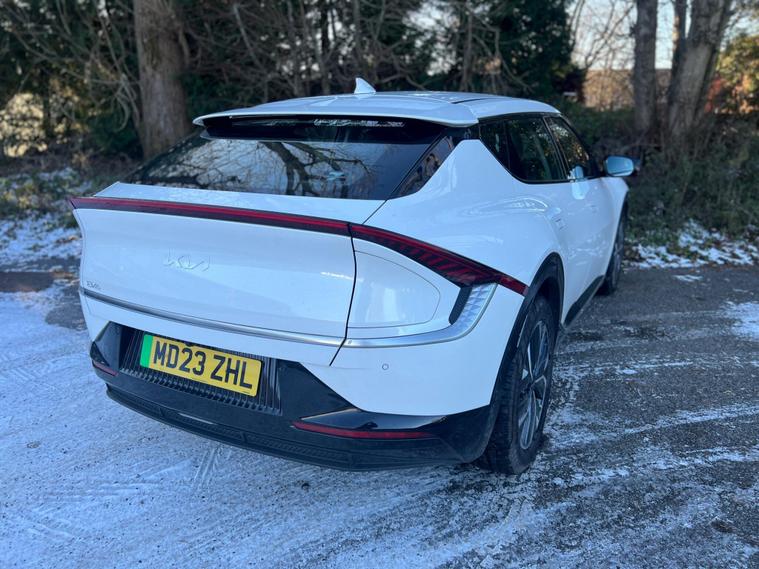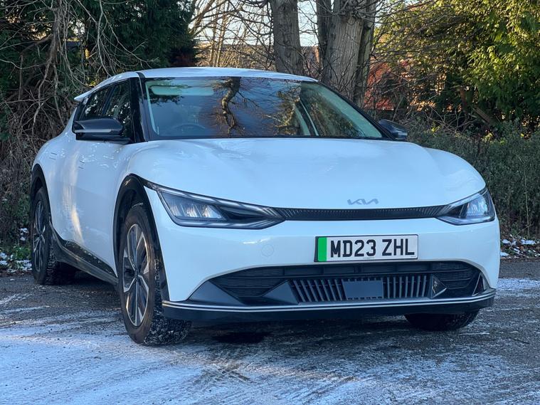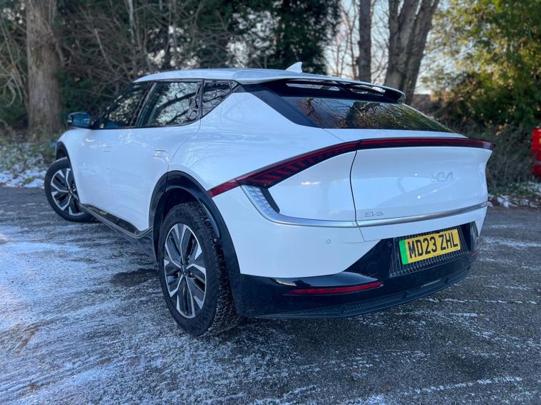 This 2023 Kia EV6 Air boasts exceptionally low mileage for its age, having covered just 9500 miles. This electric vehicle offers a substantial battery capacity of 77 kWh, providing a maximum range of 328 miles when new. It comes equipped with a suite of convenient features, including a heated steering wheel, LED headlights with automatic control, and navigation smart cruise control with a speed limiter. For ease of parking, it also includes rear parking sensors.The Kia EV6 Air is designed for efficiency and performance, with an impressive acceleration of 0 to 62 miles per hour in just 7.3 seconds. This indicates a more responsive driving experience compared to many similar vehicles. Its large boot space offers practical storage solutions for everyday needs and longer journeys. Charging is also convenient, with a full charge at home taking approximately 12 hours and 30 minutes on a 7kW charger, while rapid public charging can take the battery from empty to 80% in as little as 20 minutes..