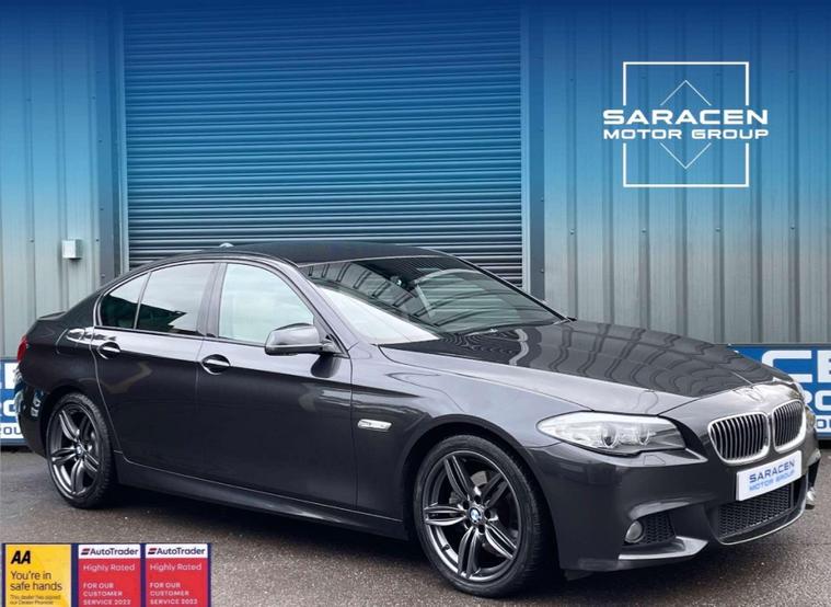BMW 5 SERIES 2.0 520d M Sport Auto 4dr Euro 5. Finished in Sophisto Grey II metallic with contrasting Dakota 'Oyster' leather interior.19'' Style 351M alloy wheels, Media Package - BMW Business Advanced, BMW Assist, Interior Trim - Fineline Anthracite Wood, M Rear Spoiler, Navigation System - BMW Business Advanced, Sun Protection Glazing, 6.5in Colour Display Screen, BMW Online services, BMW Professional Radio - Single CD and MP3, Bluetooth Hands Free with USB Audio Interface, DAB Digital Radio, Cruise Control with Brake Function, PDC - Park Distance Control - Front and Rear, iDrive Controller with Shortcut Buttons, Door Mirrors - Electric and Heated and Aspheric, Electric Windows - Front and Rear with Open-Close Fingertip Control, Heated Windscreen Washer Jets, Headlight Range Control - Electric, Air Conditioning - Automatic with Two-Zone Control, Automatically Dimming Rear View Mirror, Keyless Start, Seats - Front Heated, Steering Wheel - M Sport Leather Multifunction, M Sport Suspension.Here at Saracen Motor Group we have been awarded AA Platinum dealership recognition along with being nominated for best customer service by Autotrader for 2021, 2022, 2023, 2024 & 2025. We are a 5-star dealership with over 600 5-star reviews across all internet platforms including Autotrader and have been regarded as one of the best dealerships to buy from in the UK.Our preparation team inspects each vehicle to the highest level possible for its age and mileage. You can rest assured your next car has been cared for to the highest standard. Service history, V5 and the HPI certificate will all be present on viewing and collection. With our location based in Battlesbridge, Essex you can enjoy a haggle-free buying experience where you can drive away the same day if prior arranged, additional fees apply please see our website for details..