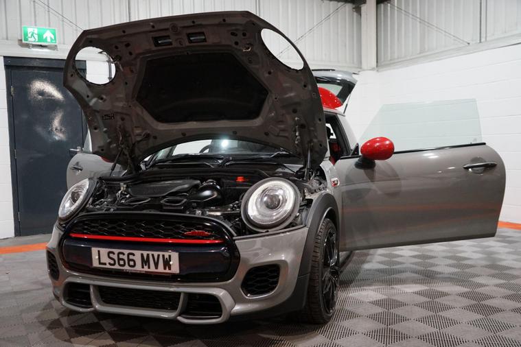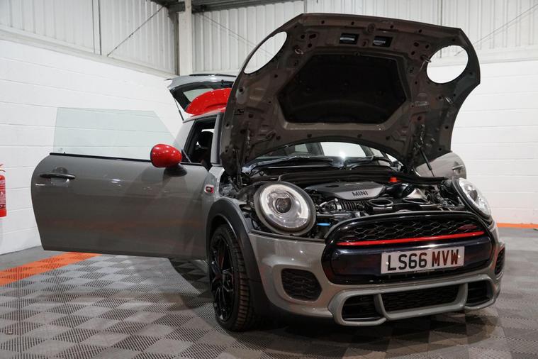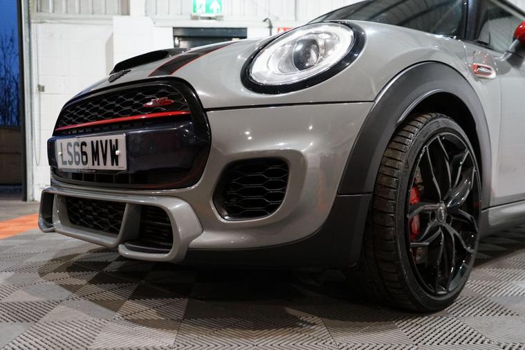 We are delighted to offer this thrilling MINI Hatch 2.0 John Cooper Works, finished in striking Moonwalk Grey with contrasting red roof and mirror caps, giving it an unmistakable, performance-focused presence.Powered by MINI’s 2.0-litre turbocharged John Cooper Works engine, this hot hatch delivers exhilarating performance and razor-sharp handling, perfectly complemented by its sports suspension for an engaging and dynamic driving experience. Enhancing both performance and sound, this example benefits from a premium Eventuri intake system worth over £1, 000, improving airflow and induction noise, alongside a Scorpion exhaust system that delivers a deeper, more aggressive exhaust note and further sharpens the driving experience.Its compact size and responsive setup make it equally exciting on twisty roads and in everyday use, while the exterior is completed by stunning 18-inch alloy wheels that sit perfectly with the JCW’s aggressive styling.Inside, the cabin reflects the JCW’s sporting character while offering impressive levels of comfort and technology. Dinamica and leather upholstery in Carbon Black provides excellent support, with heated front seats adding comfort on colder days. The CHILI Pack enhances the overall specification, while the Media Pack XL and MINI Connected services deliver advanced infotainment, navigation and connectivity.The Harman Kardon Hi-Fi system provides exceptional audio quality, and the MINI Head-Up Display keeps key driving information clearly in view. Darkened rear glass adds a sleek finish and extra privacy, while JCW bonnet stripes further reinforce the car’s performance credentials.This MINI John Cooper Works is a superbly specified and tastefully upgraded example, combining iconic MINI design, premium features and serious performance into a compact, exhilarating package that is sure to impress any driving enthusiast..