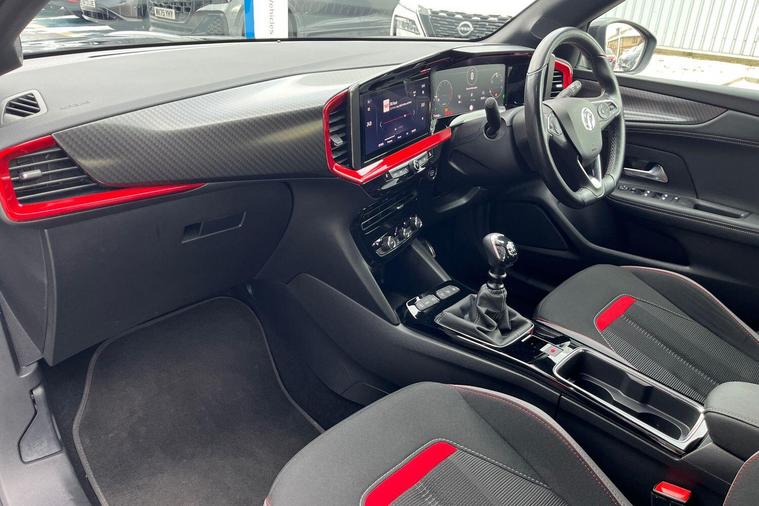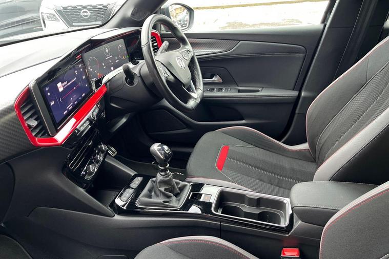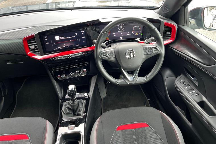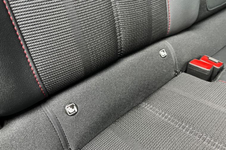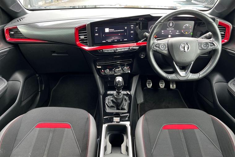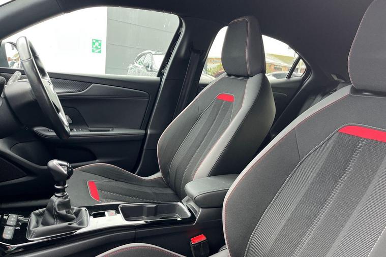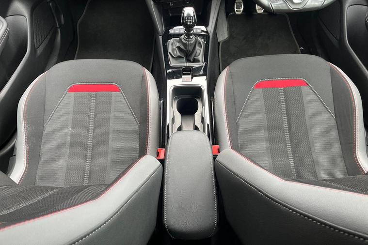 - Fabric/Leather effect - Minstral and Jet black fabric leather-effect seat trim inserts with Jet black fabric side bolsters with Red accents