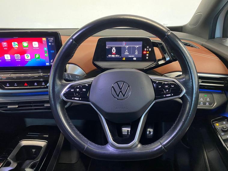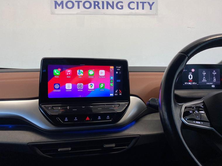ULEZ COMPLIANT|ELECTRIC | AUTOMATIC |KEYLESS ENTRY |UNDER MANUFACTURE WARRANTY TILL JUNE 2026 | PARKING SENSORS | ELECTRIC MIRRORS | CRUISE CONTROL | VOICE COMMAND | SPEED LIMITER | AUTO HEADLIGHTS | TYPE C | WIRELESS PHONE CHARGING | APPLE CAR PLAY | ANDROID AUTO | BLUETOOTH | RADIO | NAVIGATION | HEATED DRIVER & PASSANGER SEATS |HEATED STEERING | AC | HPI CLEAR |FREE AA BREAKDOWN COVER WITH ALL PURCHASES|FINANCE & WARRANTY AVAILABLE|DELIVERY AVAILABLE NATIONWIDE | £99 ADMIN FEEThis 2021 Volkswagen ID.4 Pure City is an excellent example of a modern electric vehicle, offering a compelling blend of technology and practicality. With a total battery capacity of 55 kWh, this electric ID.4 provides a maximum range of 213 miles when new, making it suitable for both daily commutes and longer journeys. Charging is convenient, with a full charge at home using a 7kW charger taking approximately 7 hours and 30 minutes, while rapid public charging can take you from empty to 80% in just 38 minutes. The City trim level comes equipped with a host of desirable features designed to enhance your driving experience. The Comfort Pack ensures a pleasant cabin environment with climate control, heated seats, and a heated steering wheel. For added convenience and safety, the Driver Assistance Pack includes front and rear parking sensors, complemented by a keyless opening system and keyless start for effortless access. Smart adaptive cruise control and a rain sensor work together with automatic LED headlights and tail lights to provide a smooth and responsive drive. Furthermore, the ID.4 boasts a large boot space, offering ample room for luggage and shopping, setting it apart from many other vehicles in its class..
