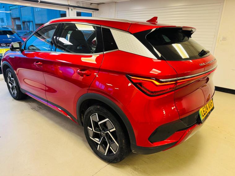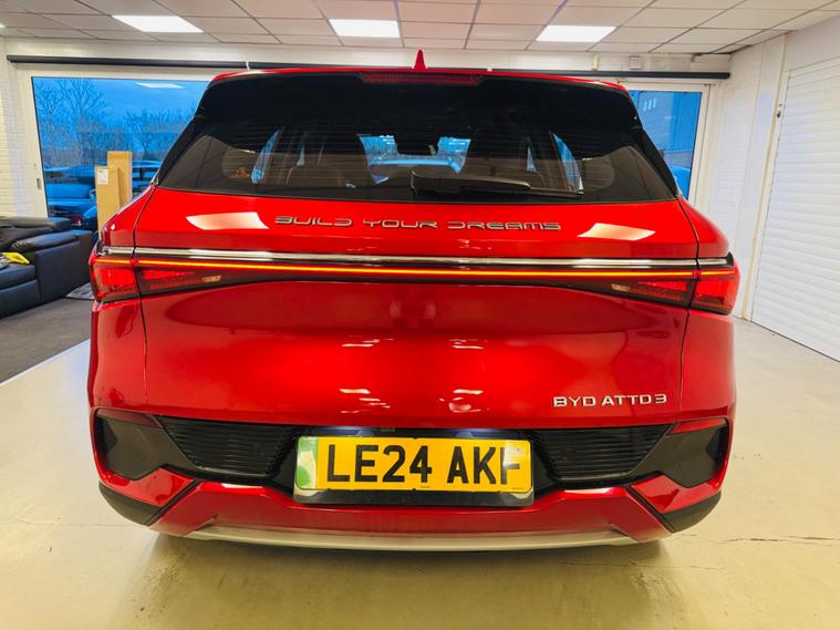 This 2024 BYD Atto 3 Comfort is a superb example, having had only one owner since new. This electric vehicle boasts a 60 kWh battery, offering a maximum range of 260 miles on a full charge. For convenience, it can be fully charged at home using a 7kW charger in approximately 9 hours and 42 minutes, while rapid public charging can take it from empty to 80% in just 40 minutes.The Atto 3 Comfort is equipped with advanced driver aids including Adaptive Cruise Control and Intelligent Cruise Control, along with front and rear parking sensors to assist with manoeuvring. Inside, you'll find the convenience of smartphone wireless charging and a spacious panoramic sunroof with anti-clamping electric operation. This model also features a large boot space, making it a practical choice for everyday use and longer journeys, highlighting its versatility compared to other vehicles in its class..