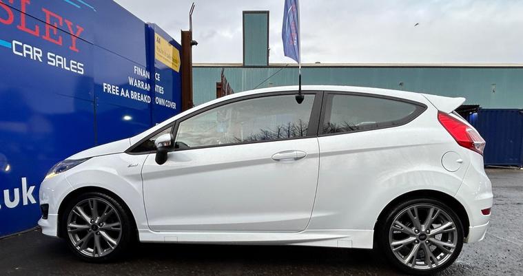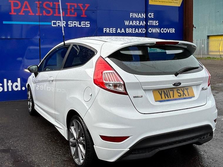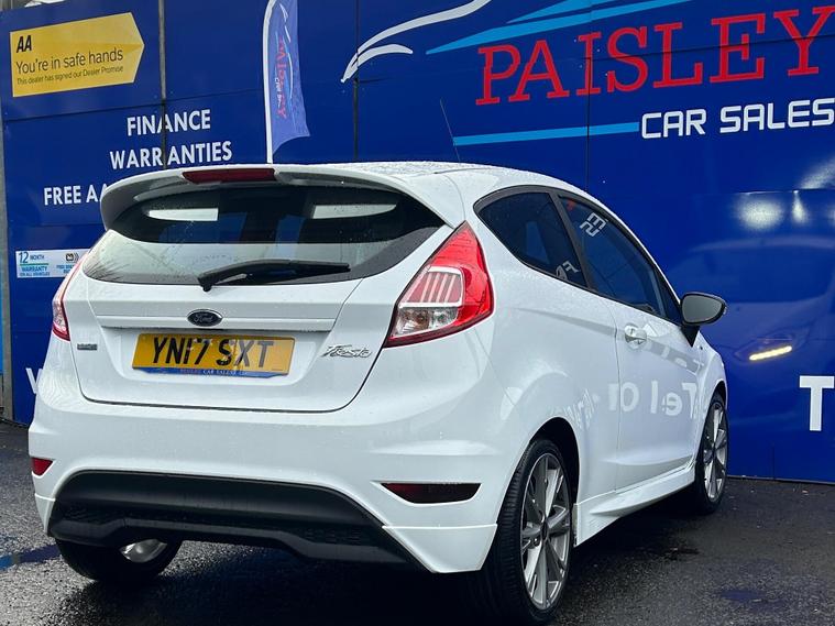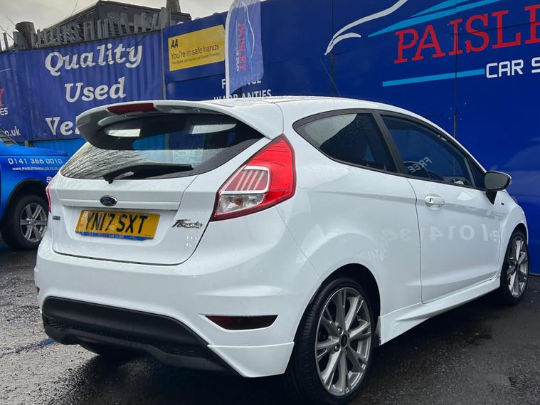 Ford Fiesta 1.0T EcoBoost ST-Line, Low Mileage , Full Service History, ULEZ Compliant? Mileage: 46, 307 (Warranted)? Owners: 2 Previous Owners? Service History: Full Service? MOT Valid Until: Full 12 months? Keys: 2 Keys? ULEZ Compliant: Yes (Euro 6)? Warranty: 12Months Included This exceptionally well-maintained Ford Fiesta 1.0T EcoBoost ST-Line is in outstanding condition inside and out, boasting a great specification from the factory, including:✅ Electric Windows & Mirrors✅ ST Full Body Styling Kit✅ Auto Lights✅ Central Locking✅ Air Conditioning✅ Daytime Running Lights✅ 17” Alloys✅ HPI Clear – All Documentation PresentQuality Assurance & Extra Benefits:Finance Available – Competitive finance options to suit your budget.Part Exchange Welcome – Get a fair valuation for your current vehicle.AA Approved Dealership – Buy with confidence.Drive Away Same Day – 5-Day Insurance Available Courtesy of the AA.Free Home Delivery – Up to 25 miles for online orders.Flexible Payment Options – We accept all major debit cards.About Paisley Car Sales :We are a trusted, Renfrewshire-Based used car dealership, dedicated to providing high-quality vehicles and outstanding customer service. If this vehicle doesn’t meet your needs, we can source one to your specifications.? Visit Us: Office 2, Wellington street, Paisley, Renfrewshire, PA3 2JQ? Call Us: 01410022098? Website: dealer's website this exclusive web-discounted price while it lasts! Contact us today for more details or to book a test drive. ?Here at Paisley Car Sales we are always ready to go the extra mile. Don't hesitate to contact us!Vehicle registered: 02/03/2017Buying with Paisley Car Sales Ltd:Welcome to Paisley Car Sales, are a small family run used dealership. We hope you enjoy your experience with us, we encourage you to browse our current stock of cars and if there is nothing that jumps out to you, we are more than happy to source a vehicle on your request. Feel free to get in touch.