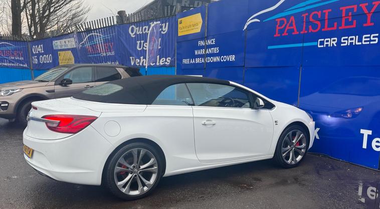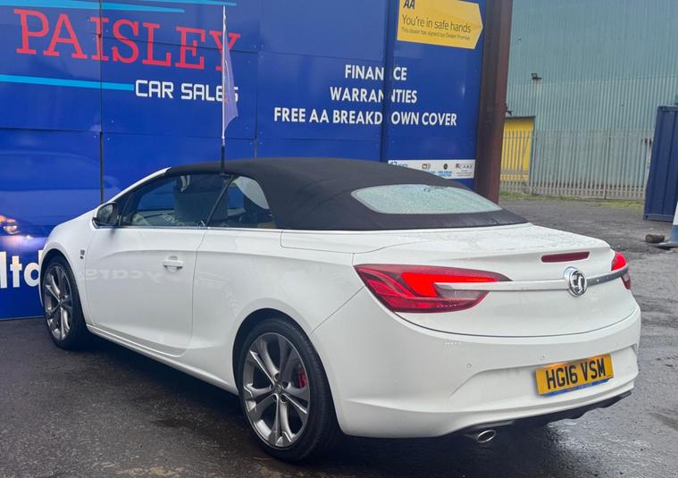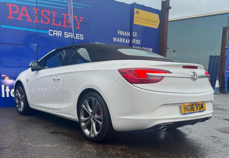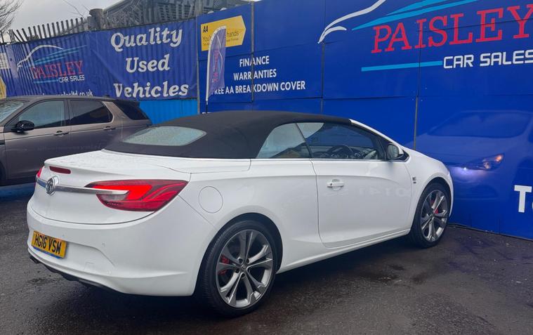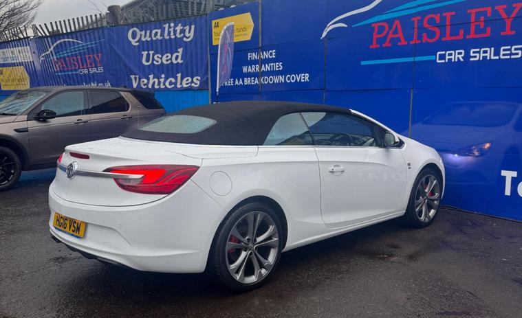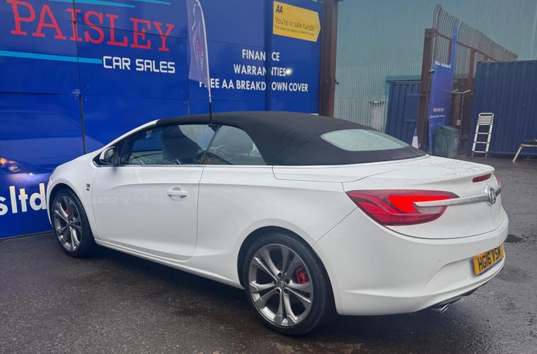 Vauxhall Cascada 1.4i Turbo Elite Euro 6 (s/s) 2dr, Low Mileage , Full Service History, ULEZ Compliant? Mileage: 29, 056 (Warranted)? Owners: 1 Previous Owners? Service History: Full Service? MOT Valid Until: Full 12 months? Keys: 2 Keys? ULEZ Compliant: Yes (Euro 6)? Warranty: 12Months Included This exceptionally well-maintained Vauxhall Cascada Turbo is in outstanding condition inside and out, boasting a great specification from the factory, including:✅ Electric Windows✅ Parking sensors✅Convertible Roof✅ Central Locking✅ Air Conditioning✅ Daytime Running Lights✅Seats - Heated Front✅ HPI Clear – All Documentation PresentQuality Assurance & Extra Benefits:Finance Available – Competitive finance options to suit your budget.Part Exchange Welcome – Get a fair valuation for your current vehicle.AA Approved Dealership – Buy with confidence.Drive Away Same Day – 5-Day Insurance Available Courtesy of the AA.Free Home Delivery – Up to 25 miles for online orders.Flexible Payment Options – We accept all major debit cards.About Paisley Car Sales :We are a trusted, Renfrewshire-Based used car dealership, dedicated to providing high-quality vehicles and outstanding customer service. If this vehicle doesn’t meet your needs, we can source one to your specifications.? Visit Us: Office 2, Wellington street, Paisley, Renfrewshire, PA3 2JQ? Call Us: 01410022098? Website: dealer's website this exclusive web-discounted price while it lasts! Contact us today for more details or to book a test drive. ?Here at Paisley Car Sales we are always ready to go the extra mile. Don't hesitate to contact us!Vehicle registered:20/07/2016Buying with Paisley Car Sales Ltd:Welcome to Paisley Car Sales, are a small family run used dealership. We hope you enjoy your experience with us, we encourage you to browse our current stock of cars and if there is nothing that jumps out to you, we are more than happy to source a vehicle on your request. Feel free to get in touch.