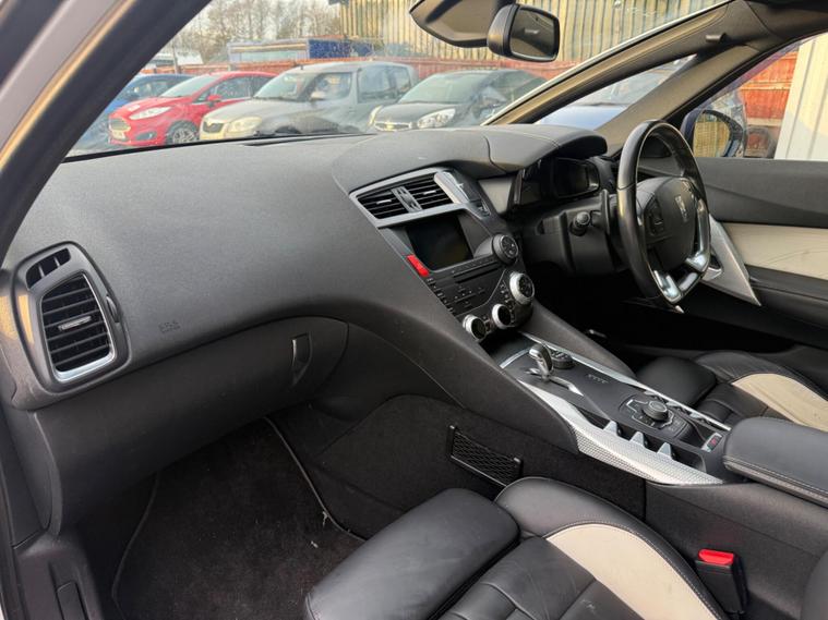 Discover this exceptional 2014 Citroen DS5 h e-HDi DSport, boasting remarkably low mileage for its age at just 27, 204 miles. This striking four wheel drive model features a 2.0 litre diesel hybrid engine, offering an efficient and capable driving experience. Keyless access and start, including keyless entry, provide seamless convenience, while the Xenon dual function directional headlights ensure excellent visibility. Stay connected on the go with the Connecting Box Bluetooth system, and manoeuvre with confidence thanks to the integrated reversing camera. Automatic headlights further enhance ease of use.The DSport trim level signifies a higher specification, indicating this vehicle offers more than many similar models. The generous boot space is a practical highlight, perfect for luggage or shopping. This Citroen DS5 combines distinctive styling with advanced technology and impressive practicality, making it a compelling choice for those seeking a premium and well equipped vehicle..