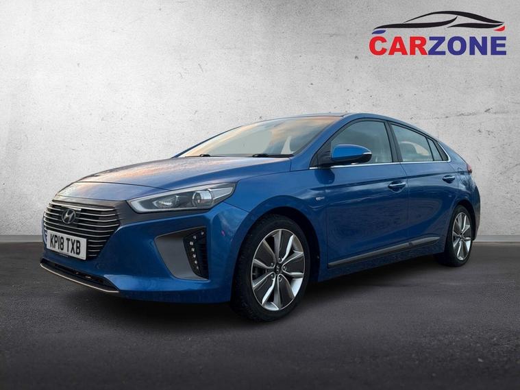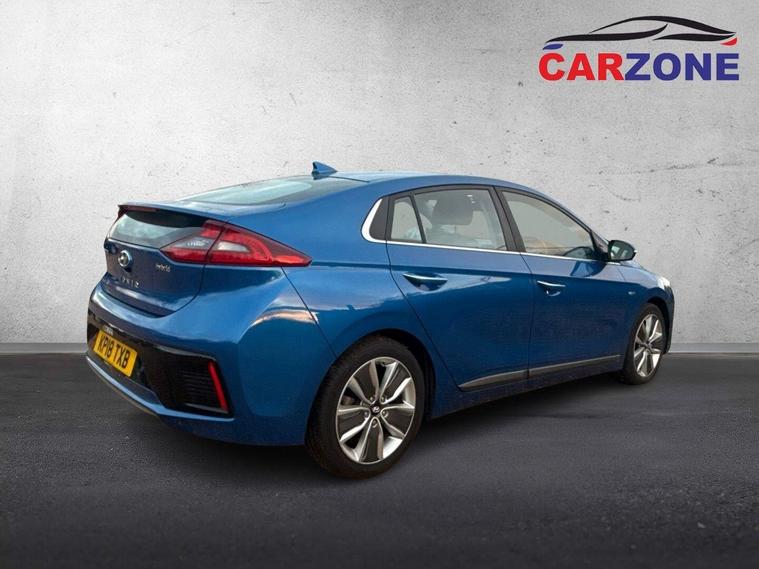 This 2018 Hyundai IONIQ h GDi Premium SE presents an exceptional opportunity with its remarkably low mileage of just 50755 miles for its age, a clear vehicle history check, and a Euro 6 emission class. This well appointed model benefits from a 1.6 litre petrol hybrid engine, offering an impressive fuel economy of 83 mpg, making it an economical choice for your driving needs. The Premium SE trim ensures a comfortable and convenient experience, featuring dual zone climate control to keep all occupants happy, and a smart key system for effortless keyless entry.Further enhancing your journey, this IONIQ includes an adaptive cruise control system for relaxed motorway driving, and a rear view parking camera with a guidance system to assist with manoeuvring. You'll also appreciate the convenience of a wireless phone charging pad, ensuring your devices stay powered up on the go. The large boot space provides ample room for luggage or shopping, and its low insurance group rating indicates that running costs are kept to a minimum, setting it apart from many other vehicles in its class..