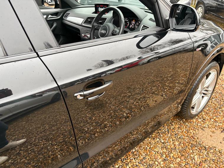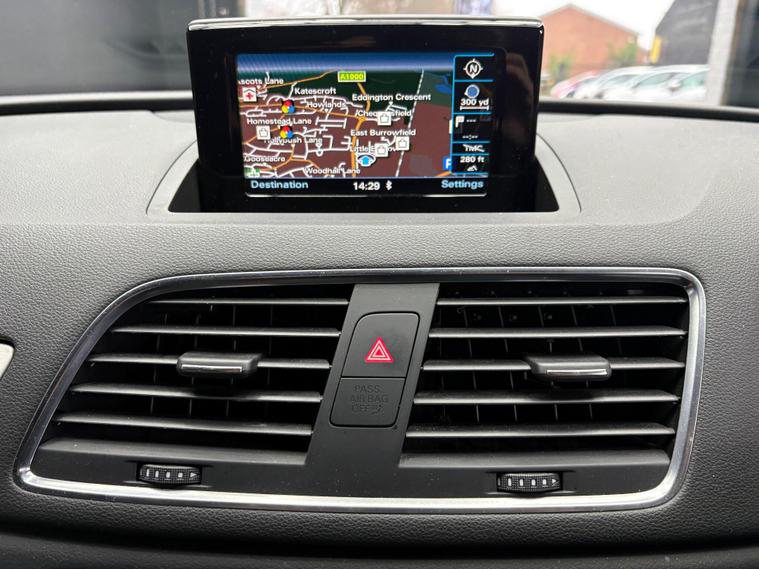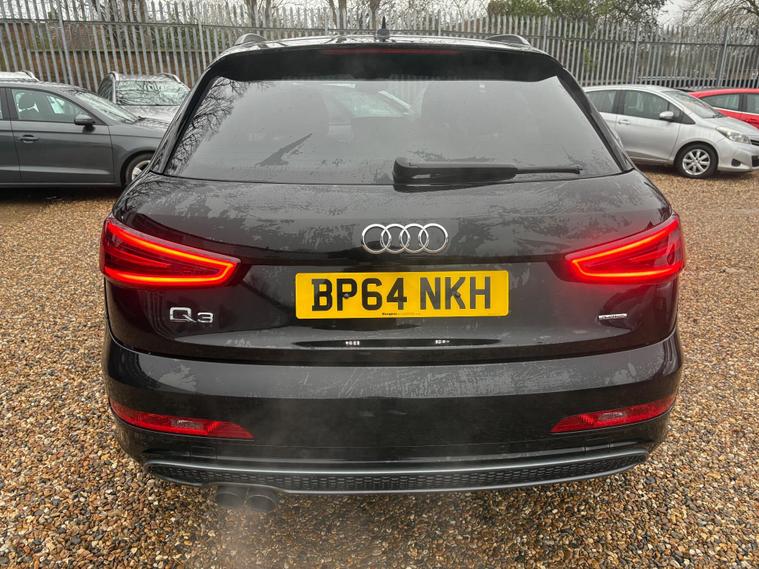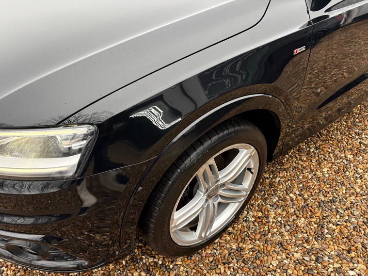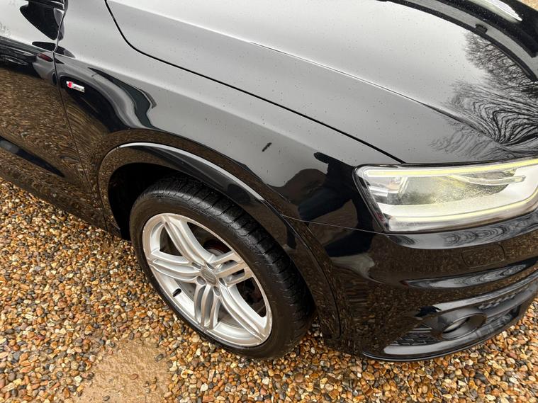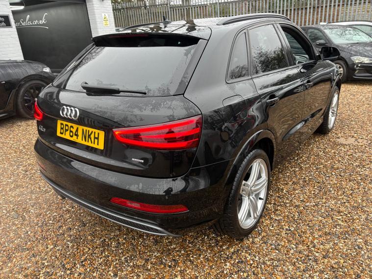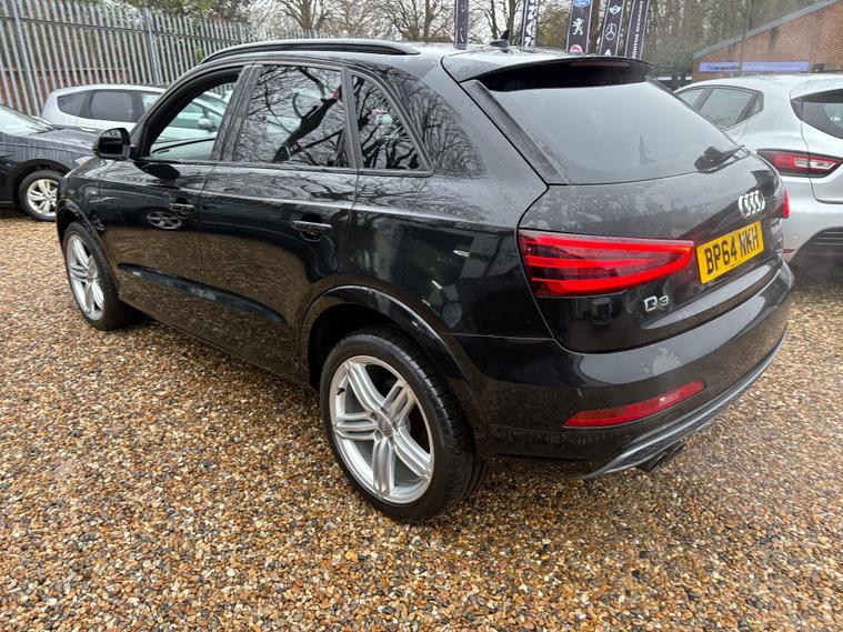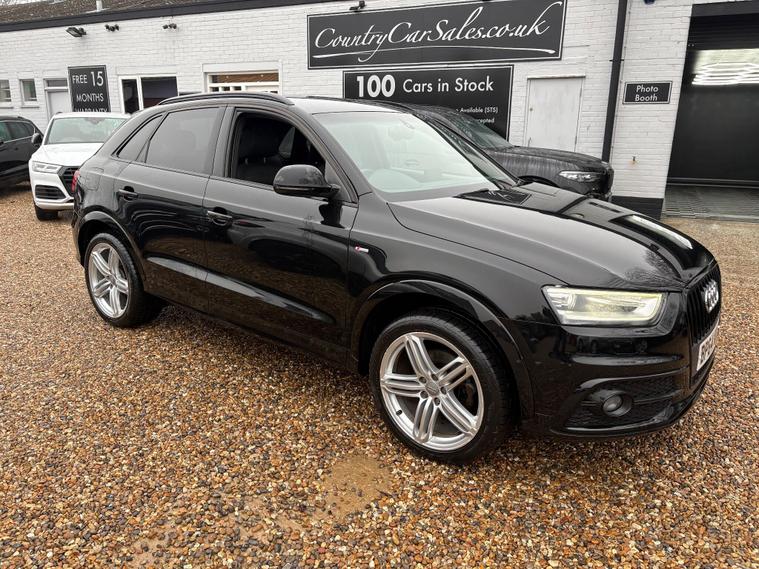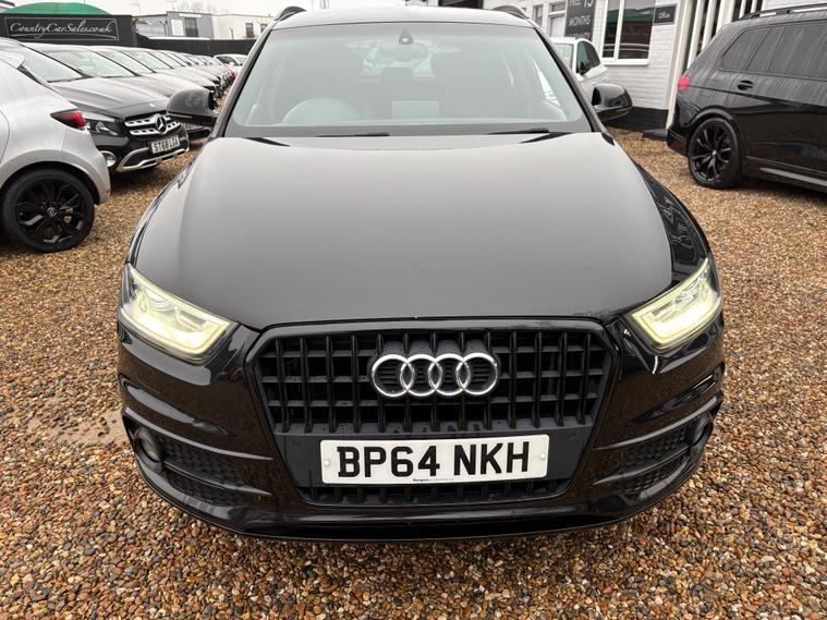A GREAT LOOKING Q3 S -LINE WITH GREAT FACTORY FITTED OPTIONS INCLUDING BLACK LEATHER HEATED SEATS...BLACK PACK ( BLACK GRILLS, ROOF RAILS AND WINDOW SURROUNDS) 19 '' ALLOYS...SAT NAV...DAB RADIO...CRUISE CONTROL...NEW MOT AND SERVICE CARRIED OUT....FULL SERVICE HISTORY... ..WE INCLUDE 15 MONTHS GOLD WARRANTY ON THIS CAR FREE OF CHARGE.....FREE 12 MONTHS A.A ROADSIDE RECOVERY......90 POINT CHECK ON EVERY CAR.....BUY WITH CONFIDENCE..... OPEN 7 DAYS A WEEK...EMAIL sales dealer's website or call 01707512867.