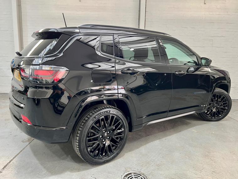 Just Arrived......Stunning in Triple Black, This 2023 Jeep Compass GSE T4 S presents a superb opportunity with exceptionally low mileage for its age, having covered just 17, 000 miles. Balance of Manufacturers Warranty. This Four Wheel Drive, Euro 6 compliant, 1.3L Petrol Plug in Hybrid model offers a blend of efficiency and capability. Inside, you'll find a host of desirable features designed for comfort and convenience, including Leather Trim, Passive Entry with Keyless Go, Bluetooth Streaming Audio for seamless connectivity, and a Heated Steering Wheel and Heated Front Seats to keep you comfortable in all conditions. The practical Wireless Charging Pad ensures your devices stay powered up on the go.The S trim level of this Jeep Compass highlights its premium positioning, offering a refined driving experience. The combination of its plug in hybrid powertrain and Four Wheel Drive system provides an intelligent approach to both urban driving and more adventurous journeys. These features, alongside its low mileage and comprehensive equipment list, indicate that this particular Jeep Compass is a standout choice within its class, offering a compelling package for any discerning driver..