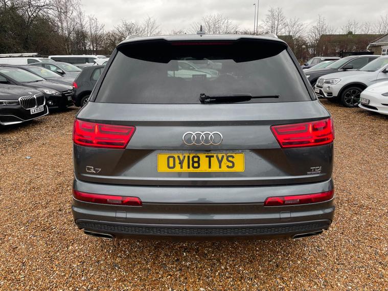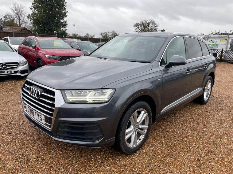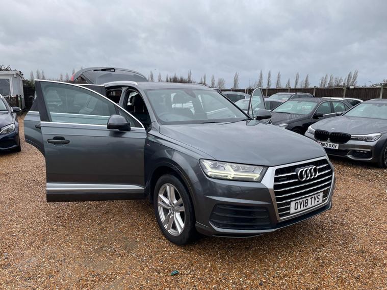 FREE 12 MONTHS AA BREAKDOWN COVER, ZERO DEPOSIT FINANCE AVAIL, 6 MONTHS NATIONWIDE WARRANTY, 2 Keys avail, Just been serviced, 1 Former keeper, Hpi clear, all previous Mot's avail. We are located in CANVEY ISLAND, ESSEX SS8 0QDThis 2018 Audi Q7 TDI V6 S line offers a compelling blend of performance and practicality, boasting a powerful 3.0 litre diesel engine and a smooth Four Wheel Drive system. As a Euro 6 compliant vehicle, it meets stringent emission standards, and with seven seats, it provides ample space for families or larger groups. The S line trim enhances its already sophisticated presence, while features like Deluxe Four-Zone Automatic Climate Control and Heated Front Seats ensure comfort for all occupants. The convenience of a Bluetooth Interface and the clarity of All Weather LED Headlights, coupled with automatic light and rain sensing functions, further elevate the driving experience.This Audi Q7 stands out with its impressive acceleration, reaching 0-62mph in just 6.5 seconds, a testament to its dynamic capabilities. Its low insurance group rating indicates that running costs can be more economical compared to similar vehicles. Furthermore, its substantial towing weight of 2800 kg makes it a highly capable option for those needing to tow caravans, trailers, or boats, demonstrating its versatility beyond everyday driving needs..