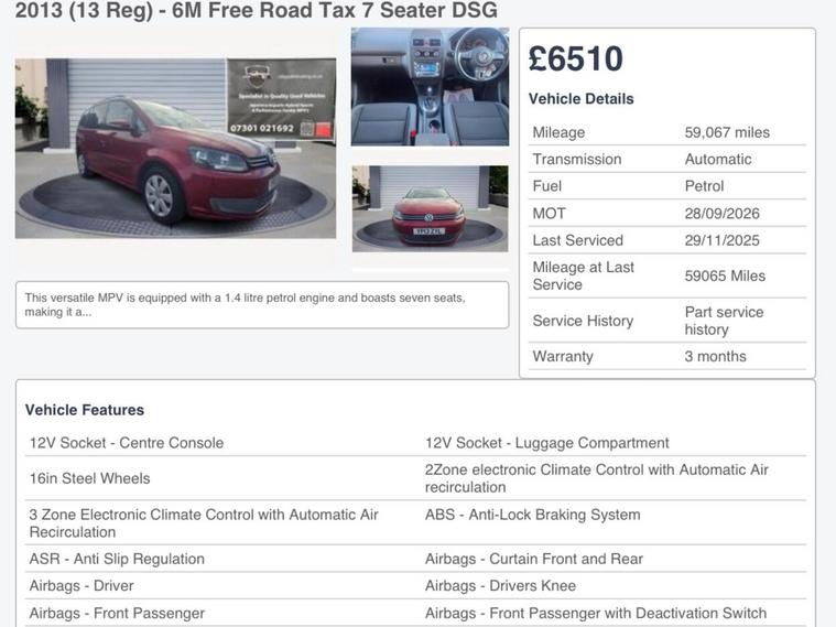 This versatile MPV is equipped with a 1.4 litre petrol engine and boasts seven seats, making it an ideal choice for families or those needing extra passenger capacity. The SE trim level provides a comfortable and practical driving experience, complemented by a partial service history that offers insight into its past maintenance. Experience responsive performance with this Touran, capable of accelerating from 0 to 62 miles per hour in just 9.5 seconds. This brisk acceleration demonstrates its capability when compared to other vehicles in its class. Furthermore, a three month warranty is included, providing an added layer of security for your purchase. With its ability to go from 0-62mph in just 9.5 seconds, this car delivers responsive acceleration, making it quicker off the mark than similar vehicles in its class. Furthermore, its 1500kg towing capacity means it's well-equipped for various tasks, 7 Seater MPV VW TOURAN, 1.4 TSI S, DSG 7 SPEED AUTOMATIC 2013 year of manufacture. This one has only covered an amazingly 60k with documentation as proof GRADE 4 Clean as a whistle Feels like it too when driven not a single rattle or knock on the road. This has been marinated serviced in Japan and will be serviced before sold. This Comes up immaculate once leathered down. Features include Digital Dash, Automatic lights, a great Looking MPV in metallic white, perfect MPV all round a joy to drive. Everything in MPH and ENGLISH language. suede seats in Good condition still, Multifunction display colour screen, Multi Device Android touch screen Mirror link. This seems like a brand-new showroom car with no road noise. Why Buy from JDM Trading Ltd??Award-Winning Customer Service (2020-2025) with Over 285 5-Star Reviews? Specialists in Quality Used & Japanese Import Vehicles? All Debit & Credit Cards Accepted? Delivery Available Anywhere in the UK Mainland (T&Cs Apply)? Family-Owned Business with a ''Transparent Trouble-Free Motoring'' Approach. Nationwide delivery Anywhere in uk mainland..