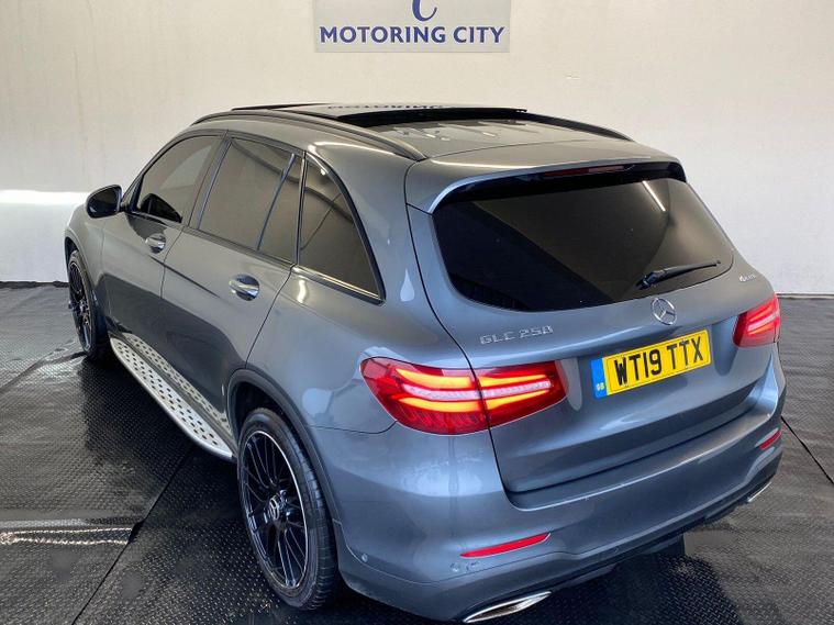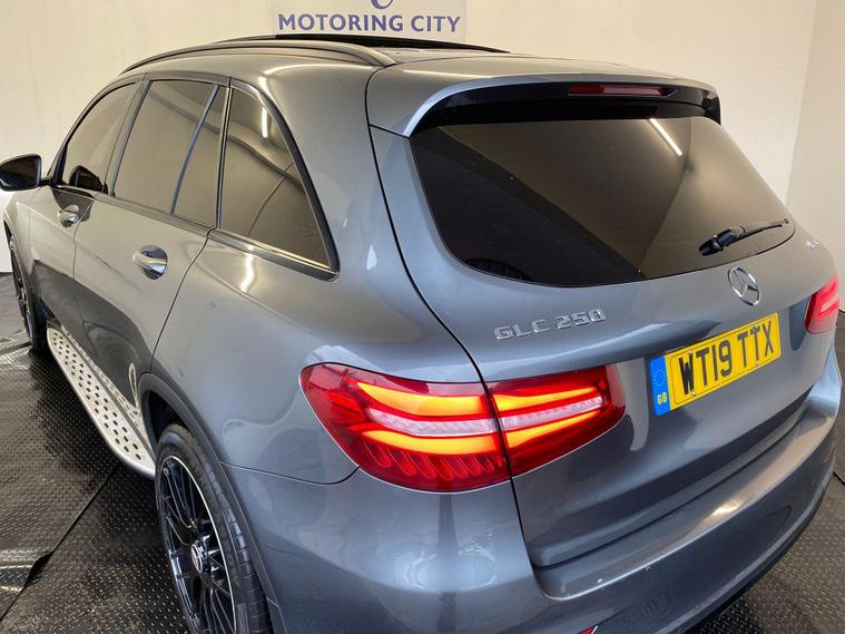 ULEZ COMPLIANT|PETROL | AUTOMATIC |ROOF | AMG NIGH EDITION | PARKING SENSORS | REVERSE CAMERA | 360 CAMERA | 4 MATIC | ELECTRIC TAILGATE | HEATED DRIVER & PASSANGER SEATS | ELECTRIC MIRRORS | ELECTRIC DRIVER & PASSANGER SEAT ADJUSTMENT | VOICE COMMAND | CRUISE CONTROL | SPEED LIMITER | PADDLE SHIFT | START STOP | DRIVE MODE OPTION | USB | 12V | BLUETOOTH | AC | NAVIGATION | RADIO FM, DAB |HPI CLEAR |FREE AA BREAKDOWN COVER WITH ALL PURCHASES|FINANCE & WARRANTY AVAILABLE|DELIVERY AVAILABLE NATIONWIDE | This 2019 Mercedes Benz GLC250 AMG Night Edition offers a compelling blend of performance and luxury. Powered by a responsive 2.0 litre petrol engine and featuring Four Wheel Drive, this Euro 6 compliant model delivers an impressive 0-62mph acceleration in just 7.3 seconds. The AMG Night Edition trim enhances its appeal with striking design elements, while the spacious boot provides ample room for all your needs. Enjoy your journeys with the convenience of Audio 20 CD with Bluetooth connectivity, and let the Electric Panoramic Glass Sunroof flood the cabin with light. Further enhancing your driving experience, the Active Parking Assist with front and rear sensors makes manoeuvring effortless, and the Thermatic automatic climate control ensures a comfortable cabin temperature. The Headlamps with integrated LED Daytime Running Lights provide excellent visibility. With a substantial towing weight of 2400 kg, this GLC is as practical as it is stylish, offering a superior driving experience compared to many other vehicles in its class..