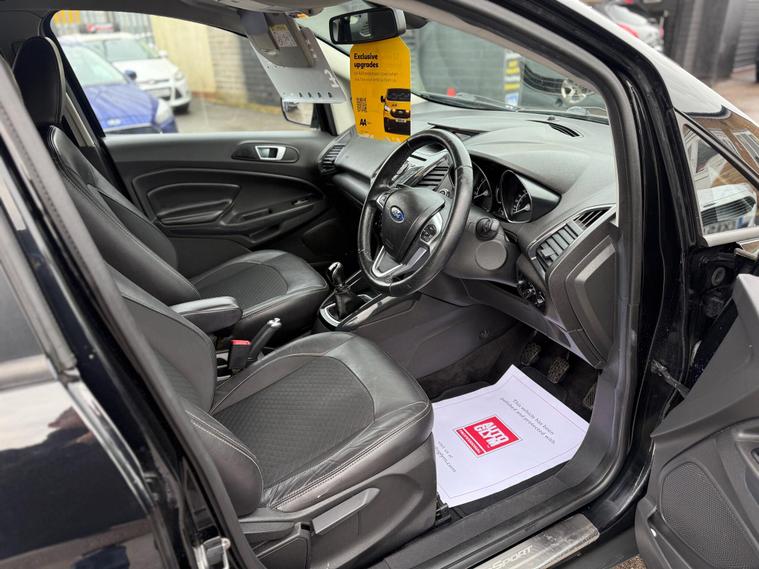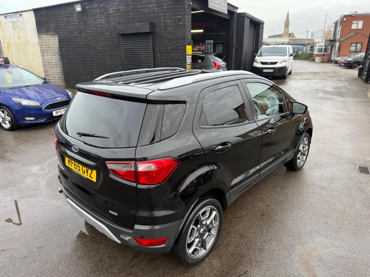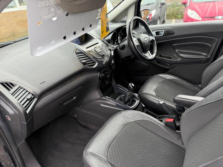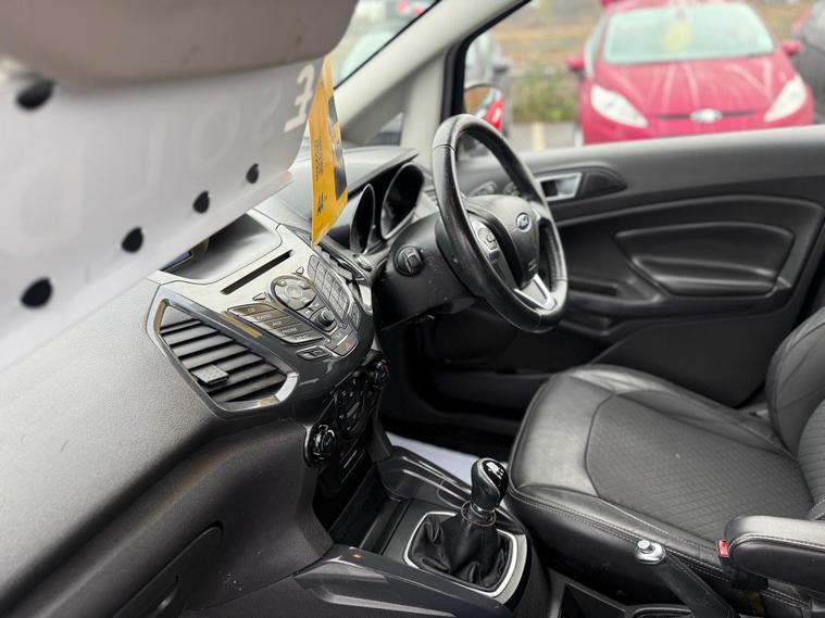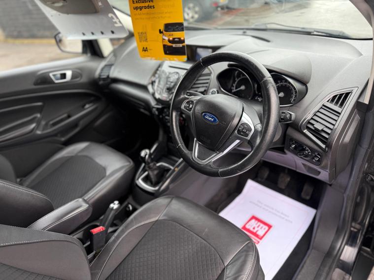 Absolute stunning ford eco sport titanium in panther black this vehicle is part of our approved used range where each vehicle is inspected in our workshop and undergoes a rigorous inspection including a new wet belt with genuine parts and our industry leading 3 year warranty.We are an approved AA dealer and work close with them and honour your rights under the consumer rights act 2015 Discover this 2015 Ford EcoSport T Titanium, a well presented vehicle ready for its next owner. This model boasts a responsive 1.0L petrol engine and comes equipped with convenient features such as central locking with keyless entry and electronic automatic temperature control for a comfortable cabin experience.This Ford EcoSport offers excellent running costs, achieving an impressive 53 miles per gallon. Its low insurance group rating and low CO2 emissions further highlight its cost effectiveness and environmental consideration, making it a sensible choice compared to similar vehicles..