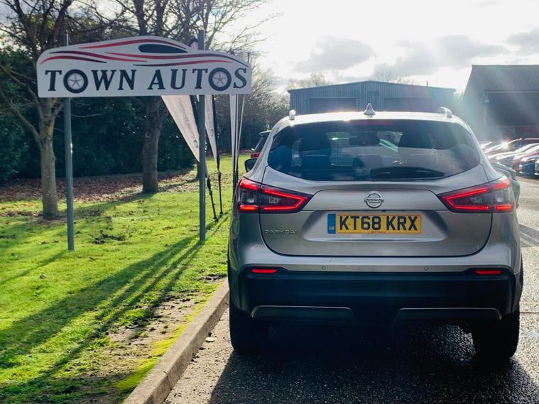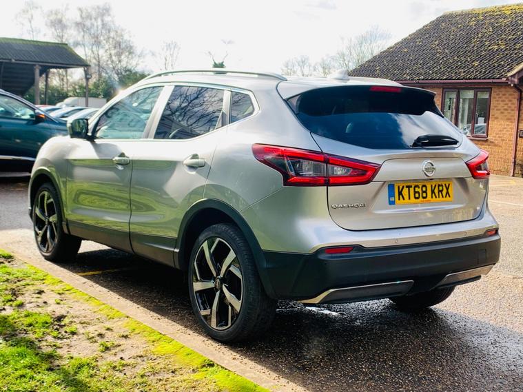 1 OWNER SINCE NEW, 06 SERVICES IN BOOK, LAST SERVICE@82K, PLENTY OF HISTIORY, MOT 17/01/2027, SAPRE KEY, 01This 2019 Nissan Qashqai DIG-T Tekna is a superb example, boasting a clear vehicle history check and having been owned by just one individual from new. Powered by an efficient 1.3 litre Euro 6 petrol engine, this Tekna trim model offers a refined driving experience. It comes equipped with a comprehensive LED Pack, featuring automatic LED headlights for enhanced visibility. Navigating tight spaces is made effortless thanks to the Intelligent Around View Monitor, which provides a 360 degree camera view, complemented by Intelligent Auto Headlights that activate automatically. Further enhancing its appeal, this Qashqai includes the ProPILOT system, which incorporates adaptive cruise control for more relaxed journeys. The Heat Pack ensures comfort in colder weather with heated seats. The low CO2 emissions of this vehicle highlight its efficiency, making it a more environmentally conscious choice compared to many similar models. This combination of advanced technology, comfort features, and excellent provenance makes this Nissan Qashqai a truly stand out option..