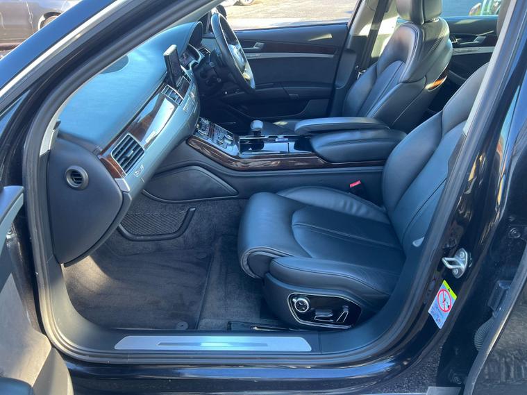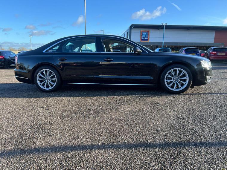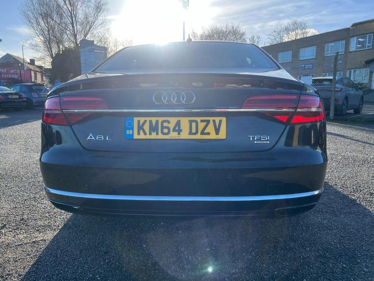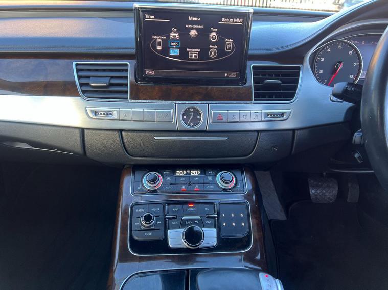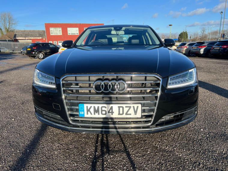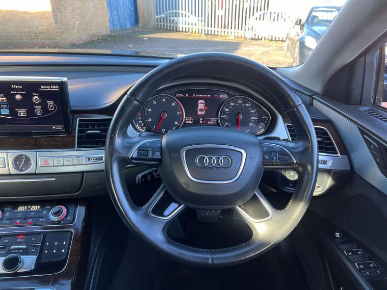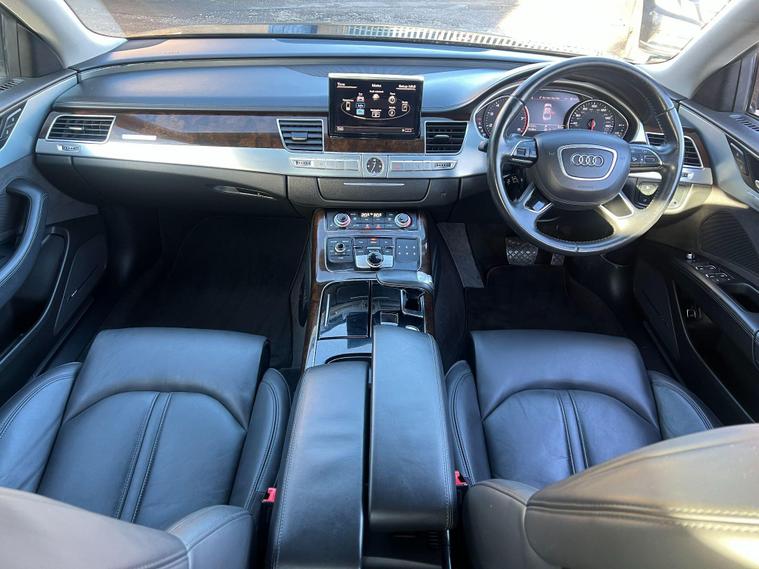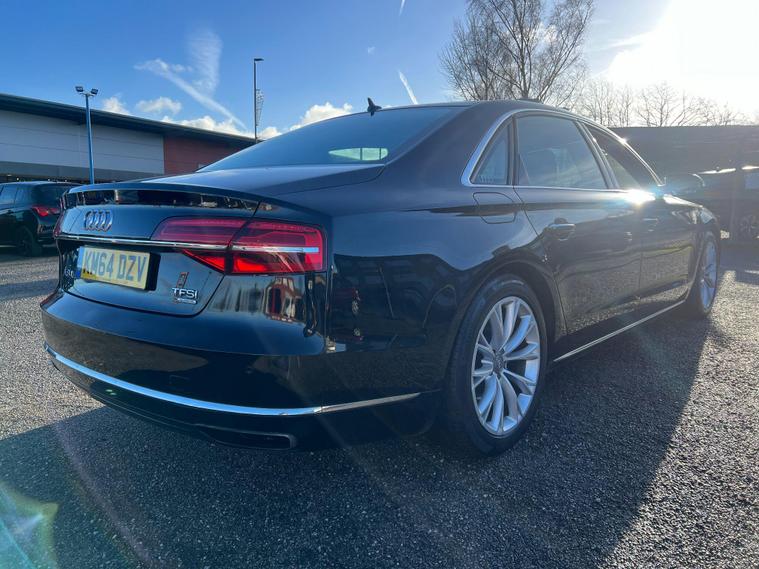 This 2014 Audi A8 TFSI V8 SE Executive offers a compelling blend of performance and luxury, boasting a powerful 4.0 litre petrol engine and a sophisticated four wheel drive system. As a Euro 6 compliant vehicle, it meets stringent emission standards. The SE Executive trim ensures a premium experience, enhanced by features such as heated front seats for comfort in all conditions, front and rear parking sensors, and a rear view camera to aid manoeuvrability. Automatic headlights provide convenience and safety, while the electric slide and tilt sunroof adds an open airy feel to the cabin.Experience exhilarating performance with the Audi A8's impressive 0-62mph acceleration in just 4.6 seconds, a figure that sets it apart from many in its class. This dynamic capability is matched by its practicality, offering substantial boot space for all your luggage needs. The combination of its potent V8 engine, advanced four wheel drive, and thoughtful features makes this Audi A8 a distinguished choice for those seeking a refined and capable executive saloon..