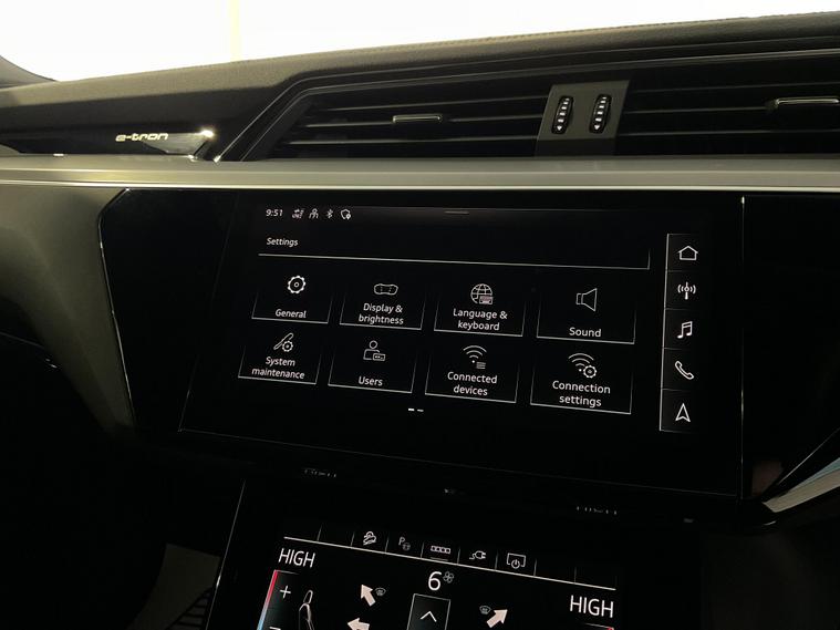 This 2022 Audi e-tron S line boasts an MOT valid until December 2026, offering you peace of mind for years to come. This electric vehicle features a Four Wheel Drive drivetrain and a substantial 95 kWh battery, providing a maximum range of 261 miles when new. Charging at home with a 7kW charger will take approximately 14 hours for a full charge, while rapid public charging can take you from empty to 80% in just 40 minutes. The S line trim enhances the already impressive e-tron, and you'll appreciate the generous boot space for all your needs. Experience exhilarating performance with the Audi e-tron S line, capable of accelerating from 0 to 62mph in a swift 5.7 seconds. This impressive acceleration demonstrates its advanced engineering and superior responsiveness compared to many other vehicles in its class. The combination of its electric powertrain, Four Wheel Drive capability, and the refined S line specification ensures a driving experience that is both dynamic and efficient, making it a standout choice for those seeking a premium electric SUV..