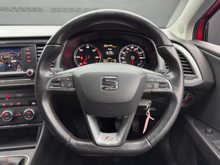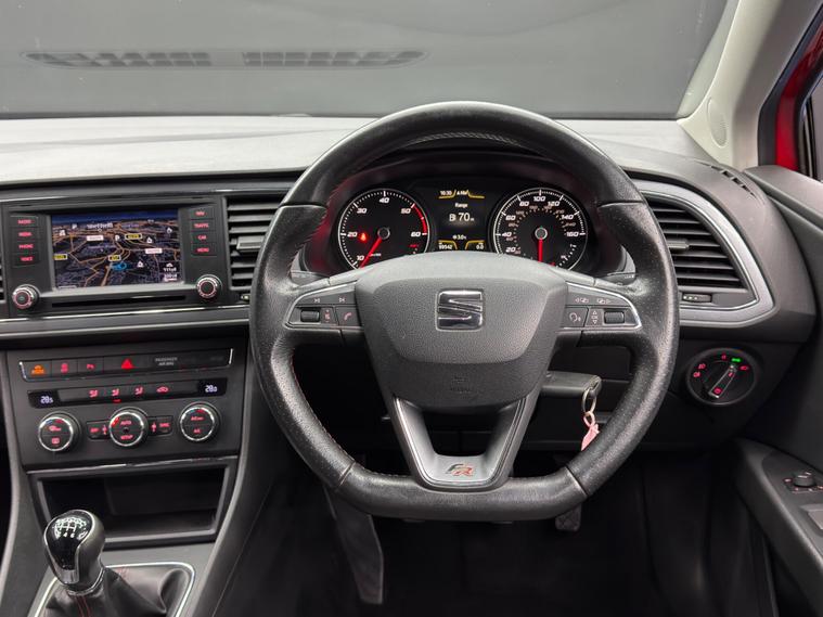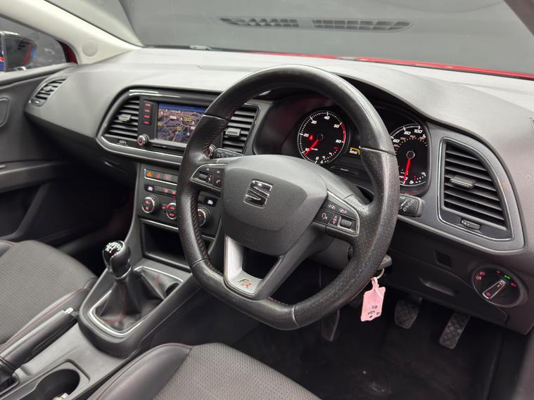 Here at Motor Gurus we are delighted to offer a SEAT Leon 2.0 TDI CR FR Sport Coupe. This vehicle is in immaculate condition inside and out. This specific vehicle is finished in a GLOSS RED and is contrasted by a BLACK LEATHER/CLOTH interior. This vehicle comes included with: FRONT & REAR PARKING SENSORS, PRIVACY GLASS, HEATED SIDE MIRRORS, PERFORATED GRIPPED LEATHER STEERING WHEEL, CRUISE CONTROL, TWIN CUPHOLDERS, CLIMATE CONTROL, SAT NAVIGATION, DAB RADIO, BLUETOOTH AUDIO, TELEPHONE CONNECTIVITY, TYRE PRESSURE MONITORING AND MUCH MORE! Our SEAT Leon 2.0 TDI CR FR Sport Coupe is ONLY £20 TAX and will also come provided with a 12 MONTH MOT and a FRESH OIL SERVICE before it leaves our premises (OTR)..