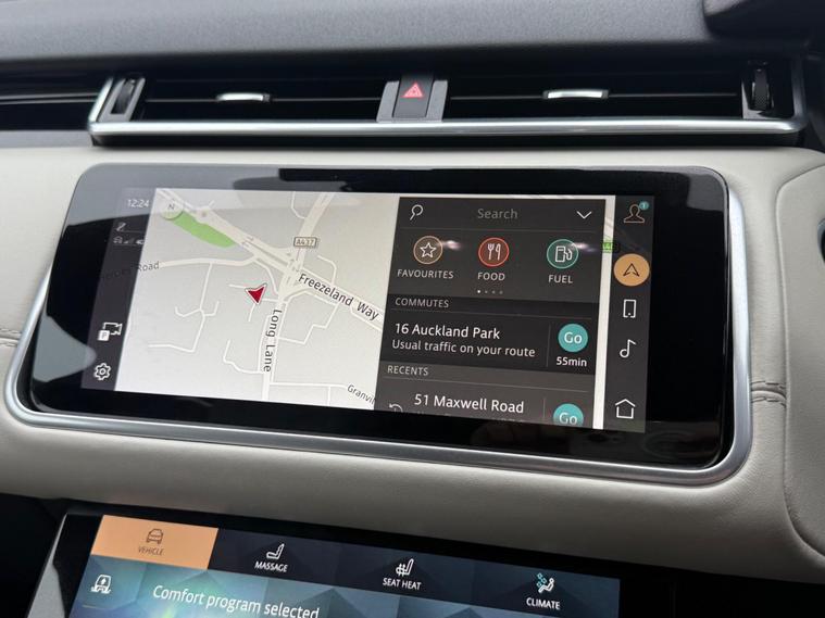 This 2021 Land Rover Range Rover Velar P250 R-Dynamic HSE offers a sophisticated driving experience. Powered by a 2.0 litre petrol engine and featuring a Four Wheel Drive drivetrain, this Euro 6 compliant model is designed for both performance and efficiency. The R-Dynamic HSE trim level ensures a premium feel, complemented by notable features such as a 3D Surround Camera system with 360 degree parking assistance, automatic headlights, and blind spot assist. Inside, you will appreciate the convenience of two zone climate control and front and rear parking aids, making every journey more comfortable and secure.The Range Rover Velar P250 R-Dynamic HSE excels with its impressive acceleration, reaching 0-60mph in just 7.1 seconds, a performance that sets it apart from many other vehicles in its class. This capability is matched by a substantial towing weight of 2400 kg, offering versatility for various needs. Furthermore, the generous boot space provides ample room for luggage or equipment, enhancing its practicality for everyday use and longer trips..