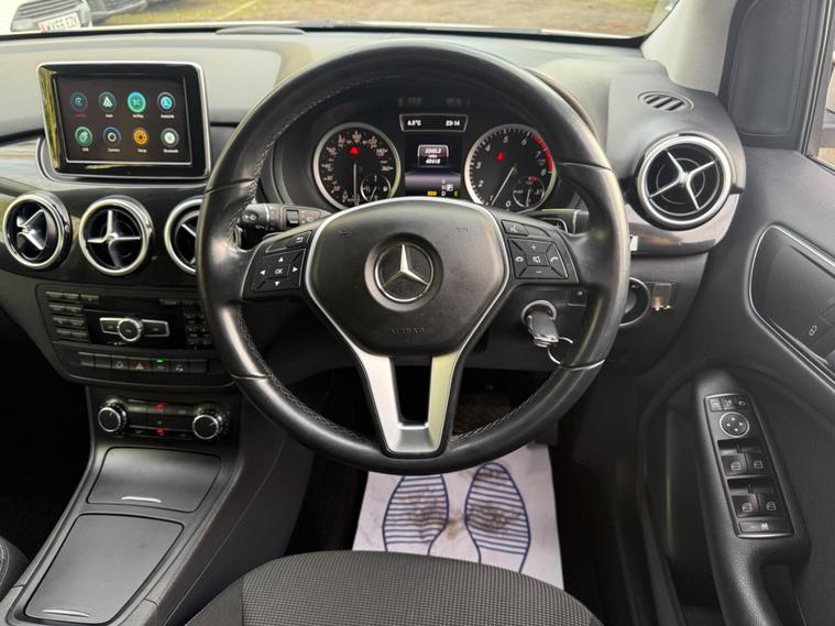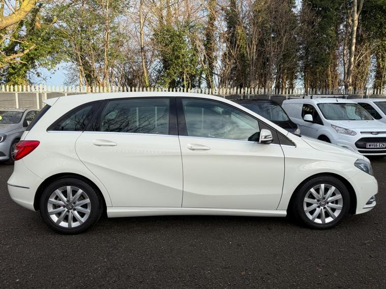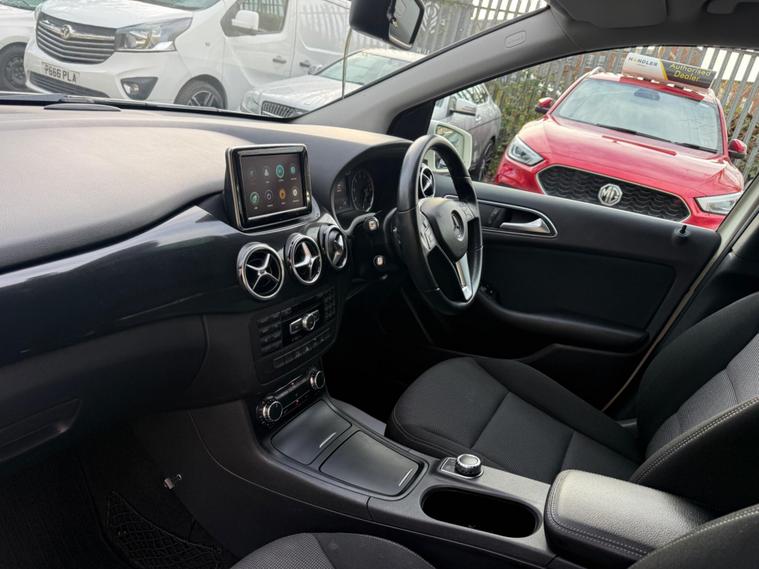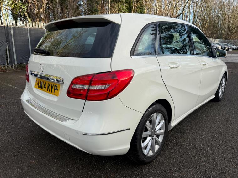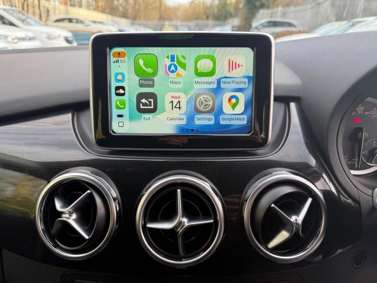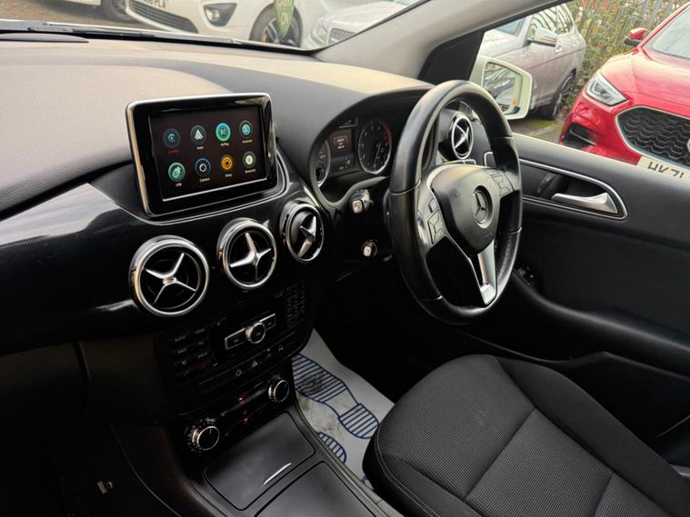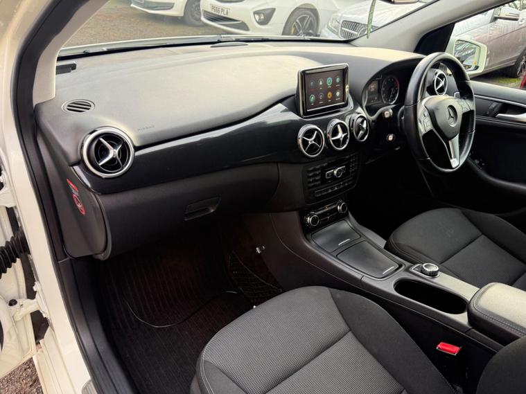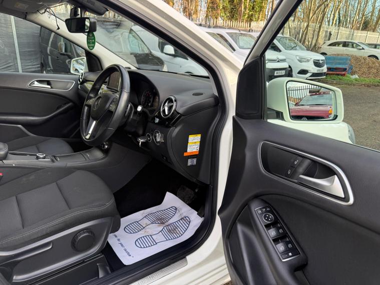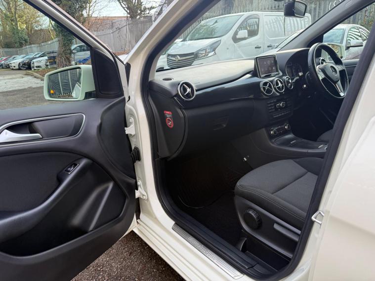 WHITE, FINANCE AVAILABLE, NAVIGATION SYSTEM, REVERSE CAMERA, CRUISE CONTROL, SPARE KEYS, APPLE CAR PLAY, ONLY ONE OWNER, PRIVACY GLASS, ULEZ COMPLIANTWARRANTED AND VARIFIABLE LOW MILEAGE WITH IMPORTED DOCUMENTS.This 2014 Mercedes Benz B Class B180 Sport boasts exceptionally low mileage for its age, having covered just 40, 425 miles. This particular model, a B180 Sport, is equipped with a 1.6 litre petrol engine and features a Sport trim. For your peace of mind, the MOT is valid until December 2026. Notable features include Bi Xenon headlights, a reversing camera for easier parking, and automatic headlamp activation. You'll also find air conditioning to keep you comfortable and a Bluetooth interface for hands-free telephone calls, ensuring you can stay connected safely while on the move.The B180 Sport offers a compelling blend of efficiency and practicality. Its fuel economy is a highlight, achieving an impressive 49 miles per gallon, which is better than many similar vehicles. This efficiency is complemented by low CO2 emissions, making it a more environmentally conscious choice. The acceleration from 0 to 62 miles per hour in 10.2 seconds is respectable for its class, and the large boot space provides ample room for luggage or shopping, indicating it is more versatile than other vehicles of its size..