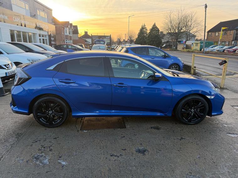 This 2017 Honda Civic VTEC Turbo SR boasts a full service history and a clear vehicle history check, offering you peace of mind. This Euro 6 compliant 1.0 litre petrol model comes with SR trim, featuring automatic climate control air conditioning, dusk sensing headlights, and adaptive cruise control for a more relaxed driving experience. Navigating tight spots is made easier with a rear parking camera and front and rear parking sensors.The Civic VTEC Turbo SR is designed for practicality and efficiency, achieving an impressive fuel economy of 55 miles per gallon. This figure indicates its superior efficiency compared to many other vehicles in its class. Furthermore, you'll appreciate the generous boot space, making it ideal for shopping trips or carrying luggage..