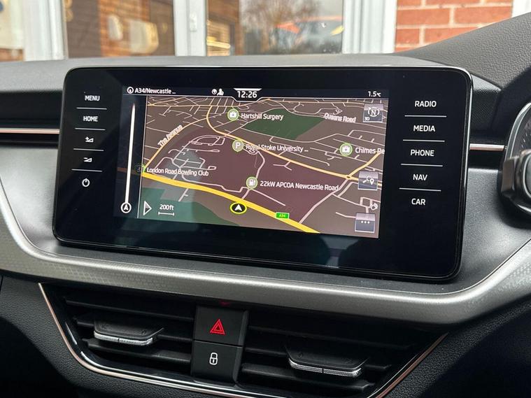 This 2024 Skoda Kamiq TSI SE L Executive is a superb example, having had only one owner since new. This stylish SUV boasts a 1.0 litre petrol engine, meeting Euro 6 emission standards. The SE L Executive trim level comes equipped with a host of convenient features, including a rear view camera with parking assistance, front and rear parking sensors, and Bluetooth connectivity. For added comfort, you'll find heated front seats and heated washer nozzles. Enjoy seamless smartphone integration with Wireless Smartlink, supporting both Android Auto and Apple CarPlay.With an impressive fuel economy of 50 miles per gallon, this Skoda Kamiq offers excellent value for money, making it a more economical choice compared to similar vehicles. Its low CO2 emissions further highlight its efficiency and environmental consideration. This well maintained, single owner vehicle presents a compelling package for anyone seeking a practical and feature rich compact SUV..