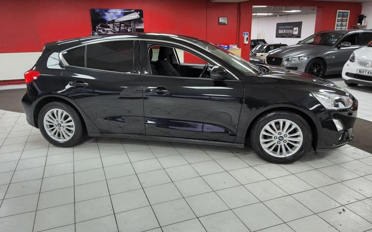 A lovely example of the ever popular Focus, finished in Black with charcoal cloth upholstery. This 2 owner Focus is a Titanium spec version so inside, you'll find comfort and convenience with heated front seats and dual zone electronic automatic temperature control, ensuring a pleasant cabin environment for all occupants and it is also is equipped with the Ford SYNC3 DAB Navigation System, which seamlessly integrates Android Auto and Apple CarPlay, alongside Bluetooth connectivity for effortless communication and entertainment. The very convenient QuickClear screen, Electric windows all round, Remote central locking and Cruise control all combine to deliver a very well equipped car.This fabulous car will leave here serviced, valeted and with a fresh 12 months MOT (with no advisories). We can arrange finance (from prime to poor credit scenarios) and we welcome a part exchange. We can email a walk around video to you and we can also arrange for UK delivery to your door, please call for more information. Viewing in our heated showroom and test drives are available 7 days a week - please call to arrange, prior to travelling. Extended warranties are available for 1, 2 or 3 years please call for prices..