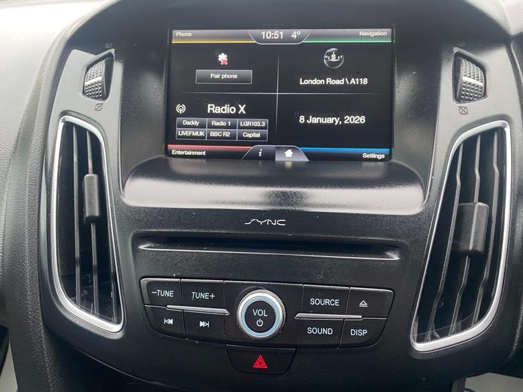 This FORD FOCUS features popular family size hatchback with economical running costs, Finished in Black colourway, 10 Service stamps entered in the service book, Road tax at 20 pounds per year, January 2027 Mot, Spec includes alloys, 8in colour screen with Nav/Bluetooth/USB/DAB, CD player, Air conditioning, Heated front screen, Rear Parking sensors, E/windows, E/Mirrors, Remote c/locking, Multi airbags, HPi clear with certificate, No admin fees to pay, All Included in the price is a 12 month warranty with the first month given as unconditional, and then a further 11 months covering the most major parts, driveaway insurance available (Ts & Cs apply).
