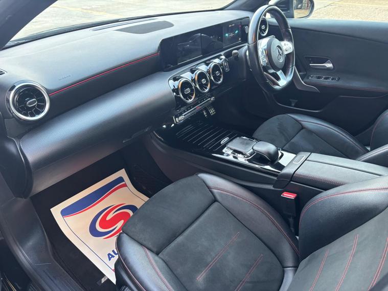 Just arrived is this great looking Mercedes A 200 AMG Line 7G-DCT in metallic Black with black half leather/ Alcantara interior. Supplied with a new service and new front brake discs and pads. Drives beautifully and is really clean and tidy inside and out with a good level of specification including touch screen SAT NAV and parking camera and AMG alloys. Supplied with 2 keys and 6 months warranty with the option to upgrade. Part exchange welcome and finance available..