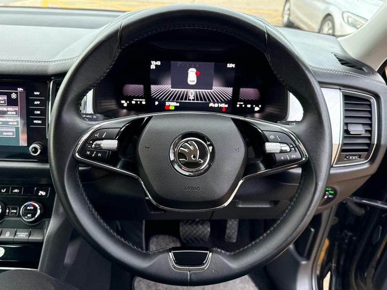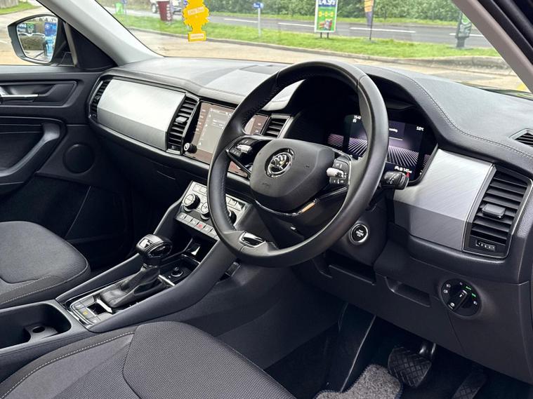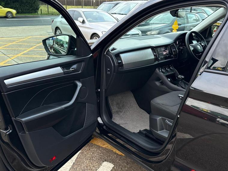 This 2023 Skoda Kodiaq TDI SE Drive is a remarkable find, boasting an incredibly low mileage of just 1111 miles from its single owner. This Euro 6 compliant, four wheel drive SUV is powered by an efficient 2.0 litre diesel engine, offering a substantial towing weight of 2300 kg. It comes equipped with practical features such as LED headlights with daytime running lights, KESSY keyless entry and start, and front and rear parking sensors to aid manoeuvrability. Inside, you'll appreciate the dual zone climate control with humidity sensor and the convenience of SmartLink, which seamlessly integrates your Android Auto or Apple CarPlay devices.The Kodiaq TDI SE Drive stands out with its impressive fuel economy, achieving a highlight of 48 mpg, and its low CO2 emissions, making it a more economical choice for your journeys. Its large boot space provides ample room for luggage or shopping, further enhancing its practicality. Furthermore, this model sits in a low insurance group, which can help to reduce your running costs. These highlights collectively demonstrate how this Kodiaq offers a superior ownership experience compared to many other vehicles in its class..