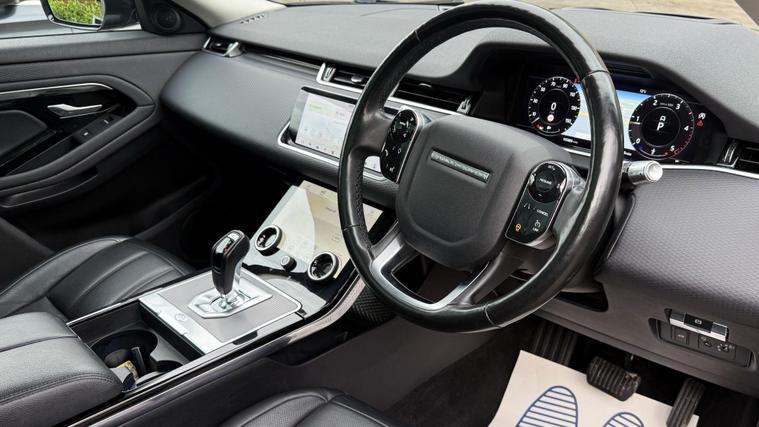 This 2019 Land Rover Range Rover Evoque D180 S boasts a full service history, offering peace of mind for its next owner. This stylish SUV features a powerful 2.0L diesel engine paired with a smooth Four Wheel Drive system, ensuring capability in all conditions. The S trim level includes a fixed panoramic roof with a powered blind, creating an airy and open cabin experience. Further enhancing its appeal are the striking 20 inch gloss black alloy wheels and a heated steering wheel for added comfort during colder months.The Evoque D180 S is designed for both performance and efficiency, with a respectable 0-60mph acceleration time of 8.8 seconds. Its Euro 6 emission classification and low CO2 emissions highlight its consideration for environmental impact compared to similar vehicles. The inclusion of Configurable Dynamics allows you to tailor the driving experience to your preferences, while Apple CarPlay integration keeps you connected on the go..