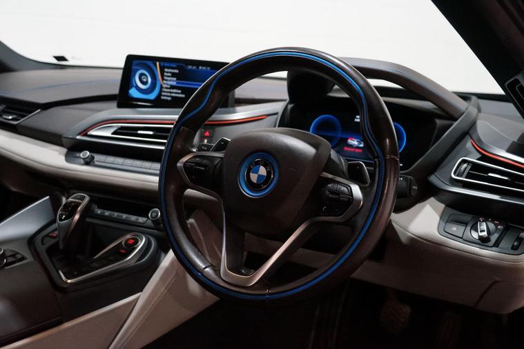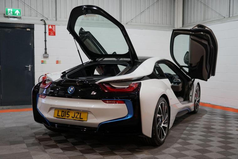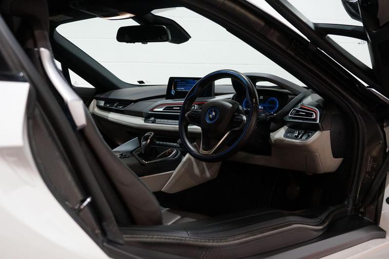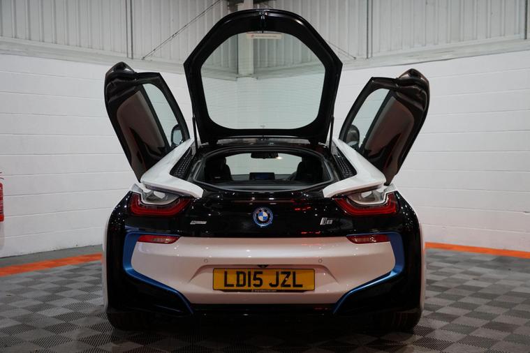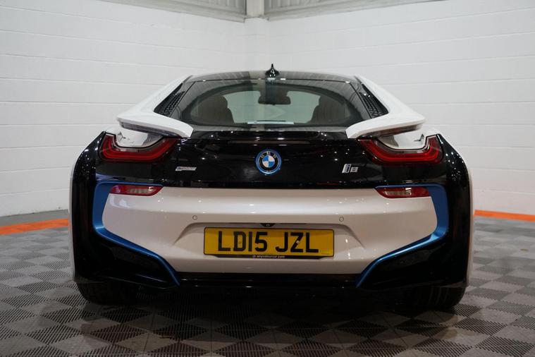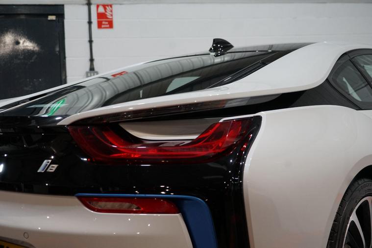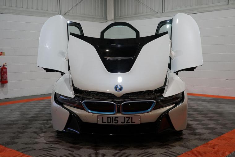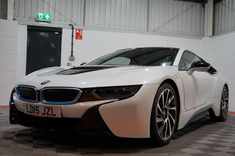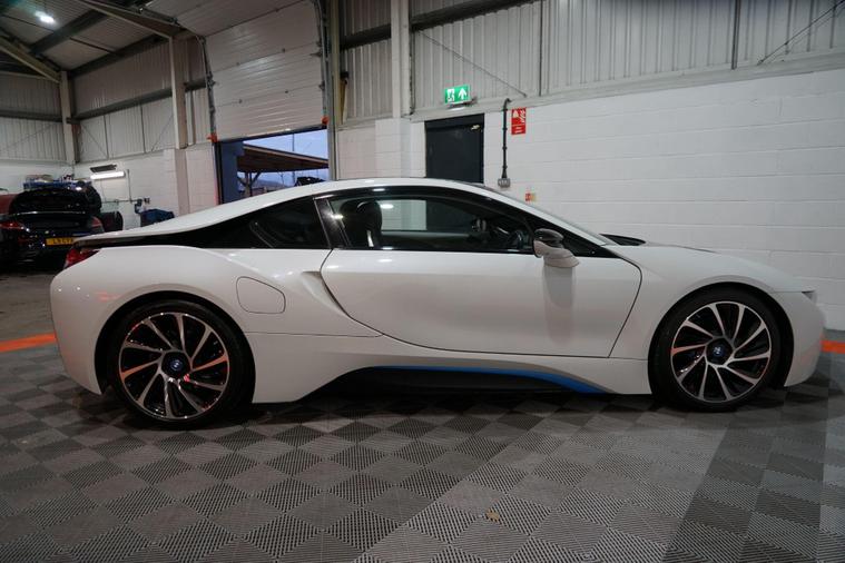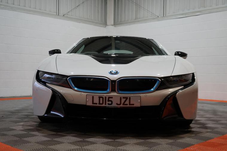We are delighted to present this striking BMW i8 1.5 7.1kWh Auto 4WD Euro 6 (s/s) 2dr, finished in Crystal White pearl effect with distinctive BMW i Blue exterior accents. A true design icon and technological showcase, the i8 blends futuristic styling with innovative hybrid performance, delivering a driving experience unlike any other.At its heart is BMW’s advanced plug-in hybrid powertrain, combining a turbocharged 1.5-litre petrol engine with an electric motor and intelligent four-wheel drive. Together, the system produces approximately 369 brake horsepower, enabling impressive performance while maintaining excellent efficiency. The i8 accelerates from 0–62mph in just 4.4 seconds, delivering rapid, seamless power whether driving in electric mode or with the full hybrid system engaged.This example benefits from a desirable range of factory upgrades, including the Harman/Kardon surround sound system, providing rich and immersive audio quality. The Interior World Halo package enhances the cabin with premium materials and distinctive design elements, reinforcing the i8’s high-tech, luxury feel.Further highlights include 20-inch BMW i Turbine-spoke style 625 alloy wheels, which perfectly complement the car’s dramatic silhouette, and high-gloss black brake calipers finished with BMW i Blue accents and designation, adding a subtle yet sporty finishing touch.Inside, the driver-focused cockpit features a digital display, intuitive infotainment system, and a futuristic layout that reflects the i8’s cutting-edge engineering. Lightweight construction, innovative materials, and aerodynamic efficiency all combine to ensure the i8 feels as advanced on the road as it looks.With its unmistakable styling, strong performance credentials, and carefully selected upgrades, this BMW i8 represents a rare opportunity to own a modern performance icon that delivers excitement, efficiency, and presence in equal measure..