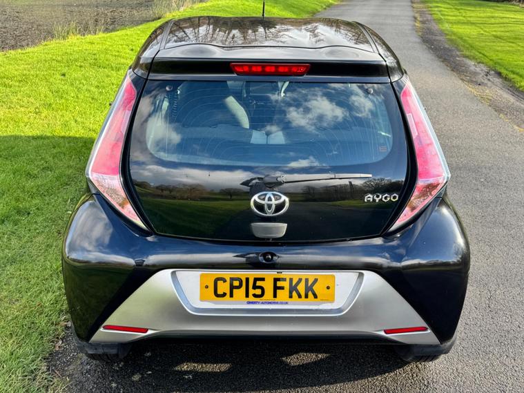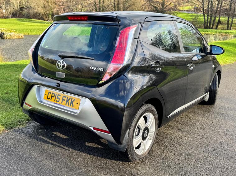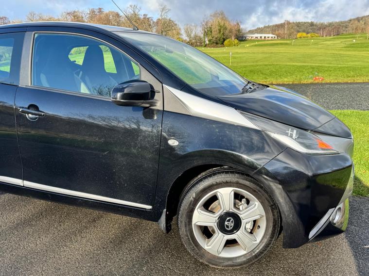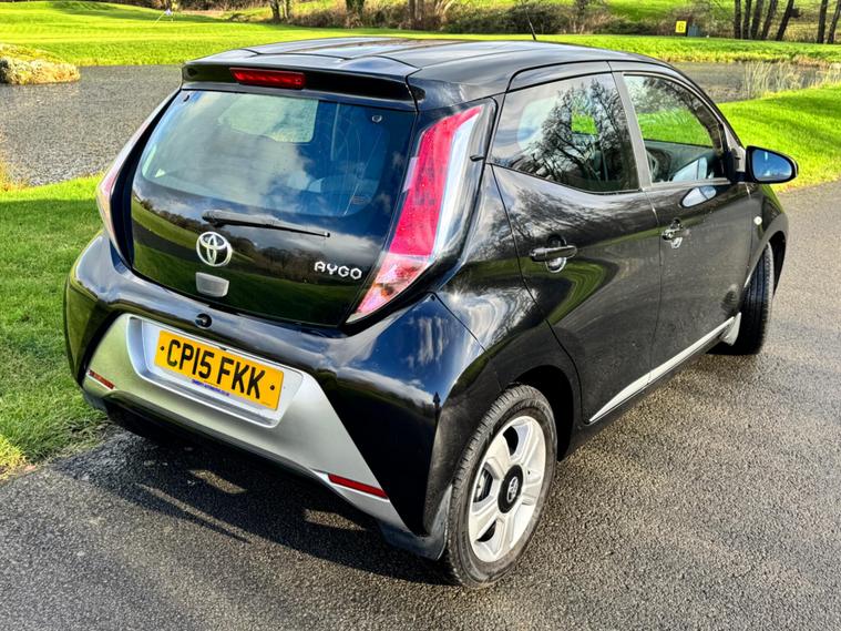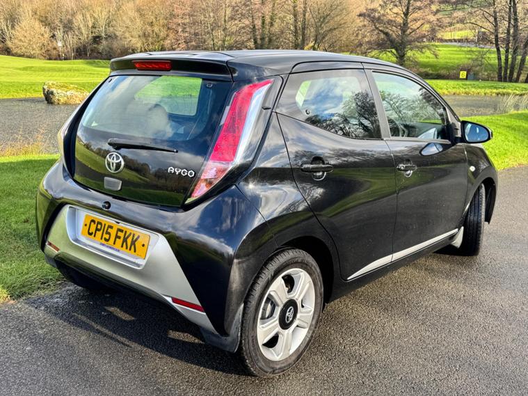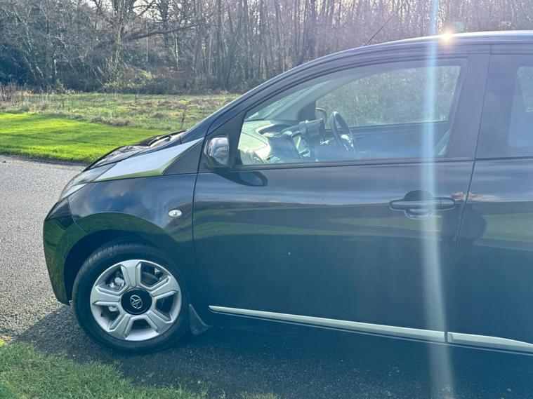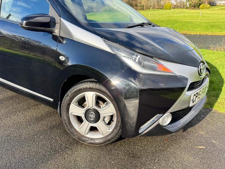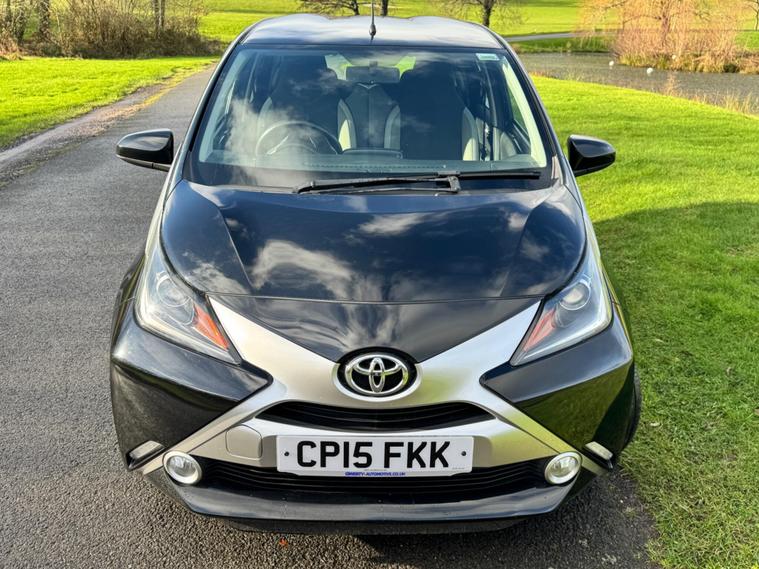 We are pleased to be presenting this 2015 Toyota AYGO 1.0 VVT-i x-clusiv Euro 5 5dr, finished in black and having covered 43, 000 miles from new. This example has had 5 owners, with 3 of these within the same family — grandparent, mother, and daughter.It comes with 6 main dealer services recorded in the service book.Running costs are very low with ULEZ compliance, £20 annual road tax, and up to 68 MPG combined.Being the x-clusiv, this is the top specification model, and comes equipped with cruise control, reversing camera, touchscreen media system, Bluetooth connectivity, air conditioning, alloy wheels, electric windows, and remote central locking.Condition is superb throughout.As with all our vehicles, this Toyota has been treated to a multi-stage valet using the best products Auto Glym have to offer. Every car we handle receives, at minimum, a service as part of our pre-sale preparation. Supplied with 12 months MOT without advisory, our complimentary 3-month warranty, 12 months free AA breakdown cover, and 2 keys.Please do not hesitate to get in touch via Text, Call or Email at any time to arrange a viewing and test drive. Viewing available by appointment only. To find out more about us, head to dealer's website Whilst every effort has been made to ensure the accuracy of the above information, sometimes errors may occur — please check with a salesperson..