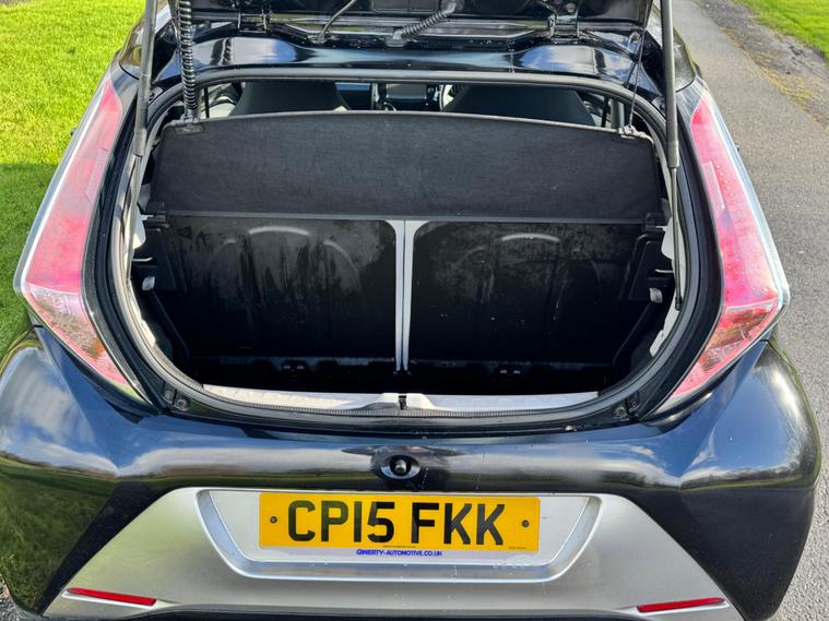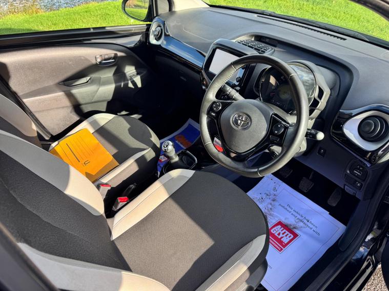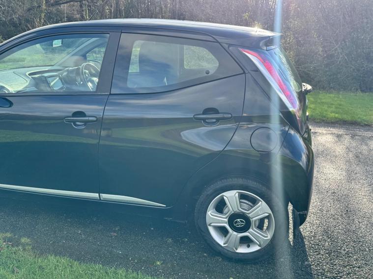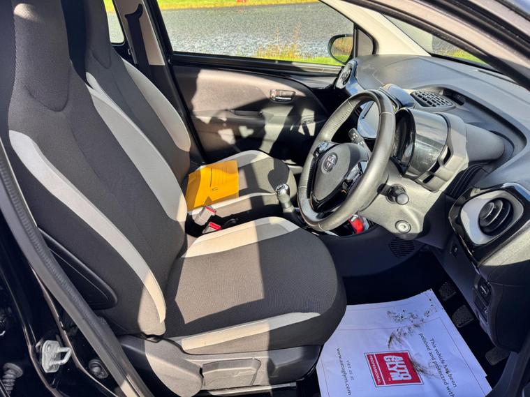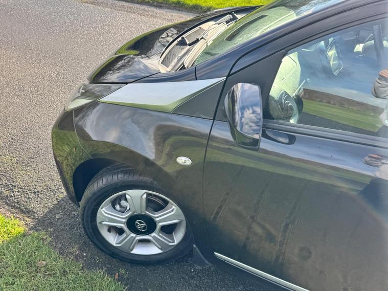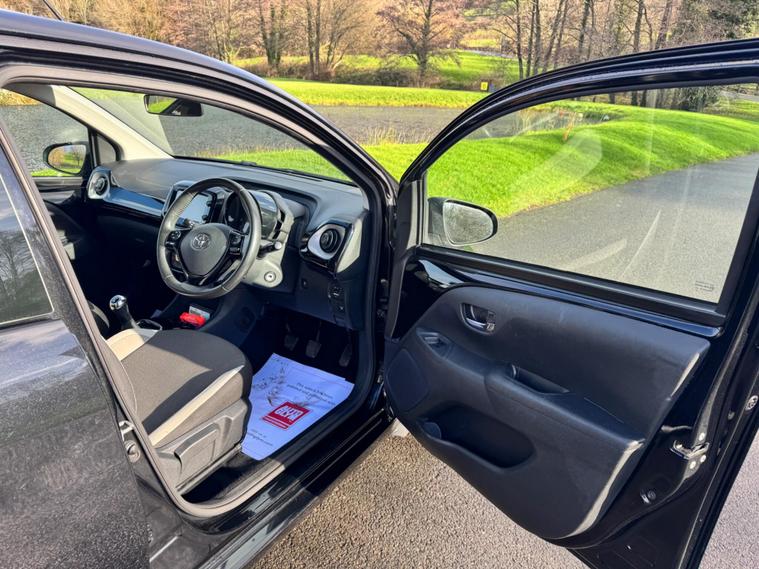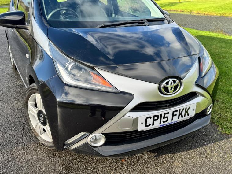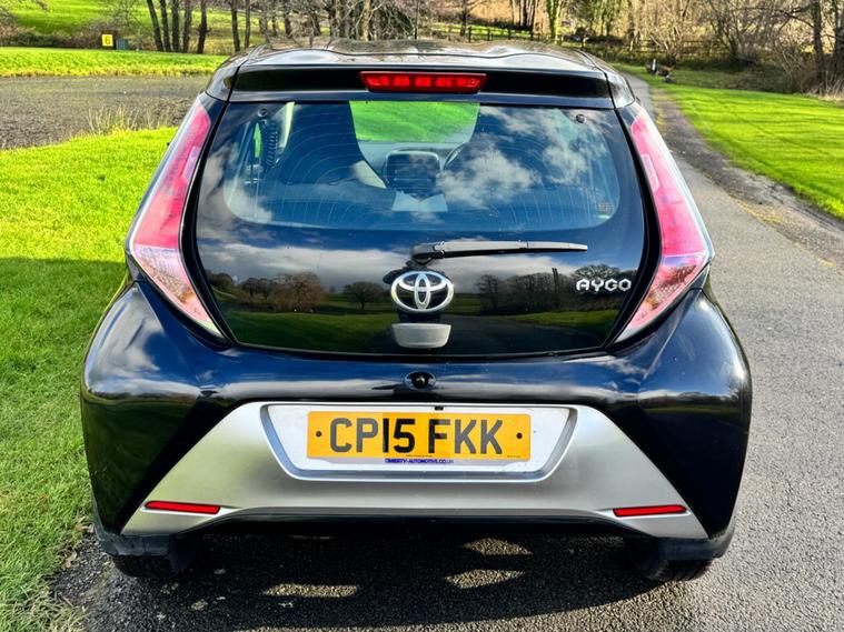 We are pleased to be presenting this 2015 Toyota AYGO 1.0 VVT-i x-clusiv Euro 5 5dr, finished in black and having covered 43, 000 miles from new. This example has had 5 owners, with 3 of these within the same family — grandparent, mother, and daughter.It comes with 6 main dealer services recorded in the service book.Running costs are very low with ULEZ compliance, £20 annual road tax, and up to 68 MPG combined.Being the x-clusiv, this is the top specification model, and comes equipped with cruise control, reversing camera, touchscreen media system, Bluetooth connectivity, air conditioning, alloy wheels, electric windows, and remote central locking.Condition is superb throughout.As with all our vehicles, this Toyota has been treated to a multi-stage valet using the best products Auto Glym have to offer. Every car we handle receives, at minimum, a service as part of our pre-sale preparation. Supplied with 12 months MOT without advisory, our complimentary 3-month warranty, 12 months free AA breakdown cover, and 2 keys.Please do not hesitate to get in touch via Text, Call or Email at any time to arrange a viewing and test drive. Viewing available by appointment only. To find out more about us, head to dealer's website Whilst every effort has been made to ensure the accuracy of the above information, sometimes errors may occur — please check with a salesperson..