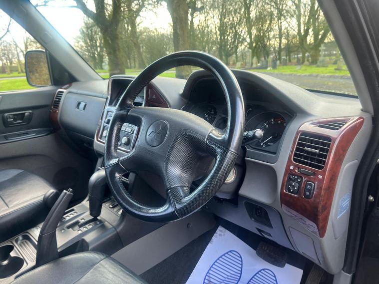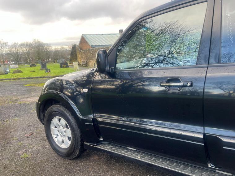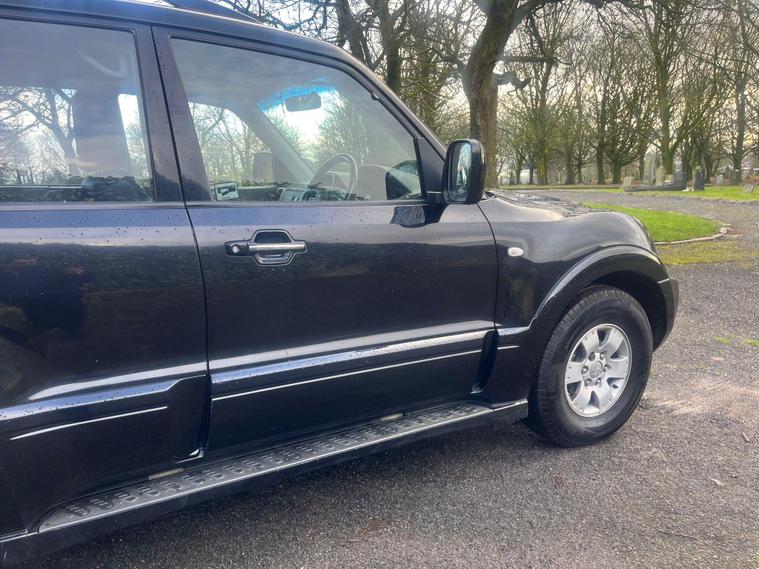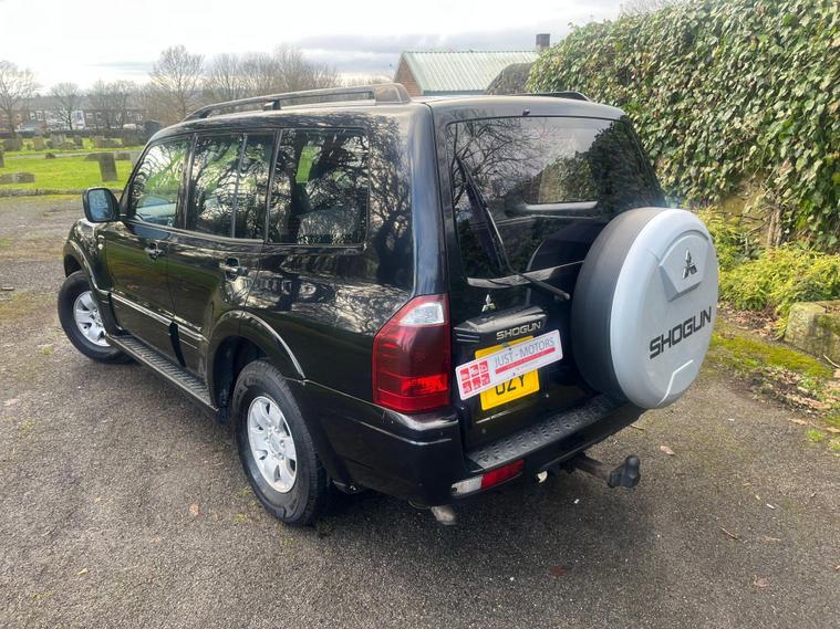 MITSUBISHI SHOGUN 3.2 DI-D FIELD IN A BLACK EXTERIOR COLOUR WITH BLACK LEATHER INTERIOR WITH DARK BROWN TRIMS... VERY SPECIAL FIELD EDITION... SPACIOUS 7 SEATER VEHICLE... 2 REMOTE KEYS... COMES WITH 12 MONTHS MOT... 1 PREVIOUS OWNER... A COMPREHENSIVE SERVICE HISTORY... FEATURING FRONT ELECTRIC SEATS... FOG LIGHTS... TOW BAR... MITSUBISHI CD FM RADIO... ROOF BARS... TRIP COMPUTER... CLIMATE CONTROL WITH FRONT AND REAR HEATED WINDOWS WITH REAR CLIMATE CONTROLS... HEADLIGHT ADJUSTMENT CONTROL... ELECTRIC ADJUSTABLE SIDE FOLDING MIRRORS... ALL ROUND ELECTRIC WINDOWS... CUP HOLDERS... COMES WITH A LIKE BRAND NEW SPARE WHEEL ON THE BACK... CENTRAL LOCKING DOOR CONTROL... ALLOY WHEELS WITH DECENT TREAD ALL ROUND... WARRANTY INCLUDED... ALL PART EXCHANGES ARE WELCOME... OPTIONAL NATIONWIDE DELIVERY EXTRA... BOOK-INS AND VIDEO VIEWINGS ARE AVAILABLE... TEST DRIVES ARE WELCOME... FOR MORE INFORMATION CALL US TODAY ON 01616232309..