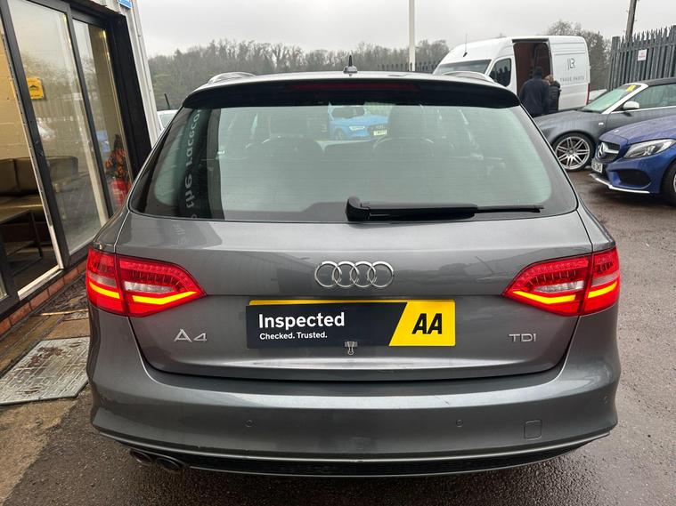 Benefit from exceptional peace of mind with this Audi A4 Avant, boasting an MOT valid until January 2027, offering extended reassurance for your journeys. This 2015 TDI S line model, featuring the S line trim and a 2.0 litre diesel engine, has a documented service history with its last service completed on 2026-01-06 at 96, 265 miles. It comes with a 3 month warranty for added security.This Audi A4 Avant is equipped with desirable features to enhance your driving experience, including electronic 3 zone climate control for personalised comfort, rear parking sensors for easier manoeuvring, and a Bluetooth interface for seamless mobile phone connectivity. The Bi-Xenon Plus headlights with automatic light sensors ensure excellent visibility in various conditions. Furthermore, its low insurance group rating indicates that running costs are kept competitive compared to similar vehicles.This vehicle has great service history with 5 recorded services with the last service carried out at 96265 miles and a cam belt replacement done at 54535 miles meaning it has been very well maintained and has MOT until January 2027.It comes with all S-Line spec, Black half leather interior, Satellite navigation, Multi function steering wheel, Paddle shift, Cruise control, Bluetooth with Bluetooth audio, Parking sensors, Electric windows, Electric mirrors and Remote central locking with 2 x keys.It is presented in excellent condition throughout and drives superb.Viewing, test drive and inspection welcome.Finance available..