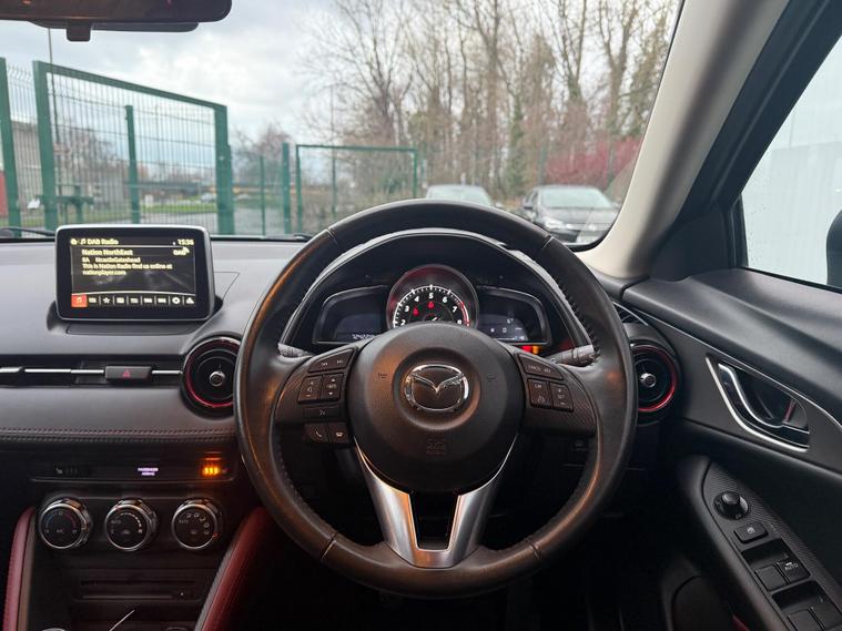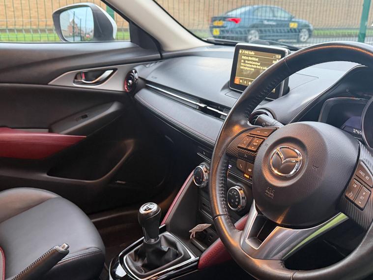 This 2017 Mazda CX-3 SKYACTIV-G Sport Nav boasts a full service history and has had only one owner from new, offering excellent provenance. This stylish compact SUV features a responsive 2.0 litre petrol engine and meets Euro 6 emissions standards. Inside, you'll find a wealth of technology including a Bluetooth Hands Free System, Smart Keyless Entry, and a Reversing Camera for easier parking. The convenience continues with Dusk Sensing Automatic Headlights and a Head Up Display, keeping your focus on the road.With an impressive fuel economy of 48 miles per gallon, this CX-3 is designed to be economical for your journeys. Its low CO2 emissions and low insurance group further contribute to lower running costs, making it a sensible choice compared to many other vehicles in its class. The acceleration is also noteworthy, reaching 0-62mph in just 9.0 seconds, demonstrating a good balance of performance and efficiency. This vehicle comes with a 6 month warranty for your peace of mind.Part exchange welcome and finance can be arranged. Viewing by appointment only.