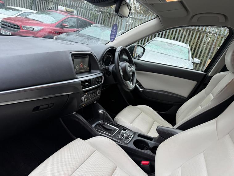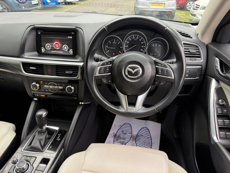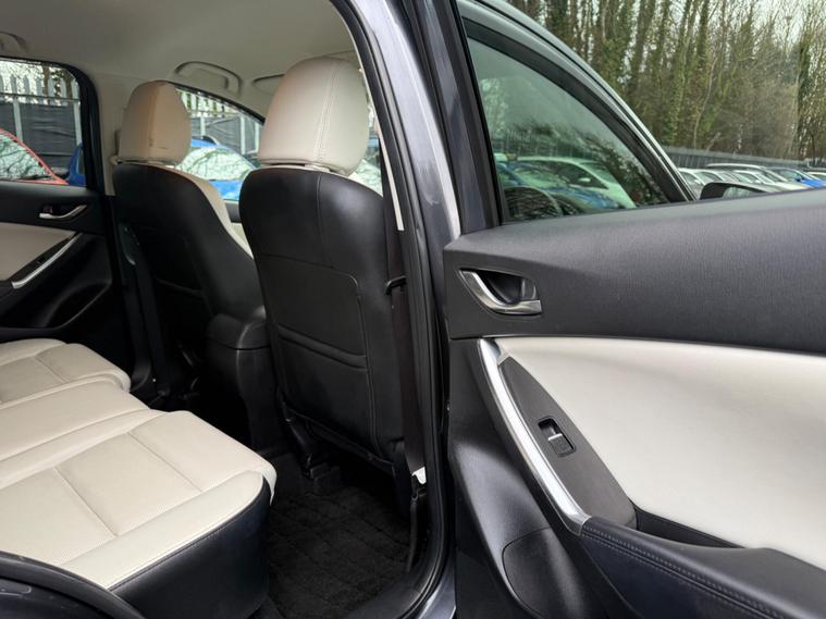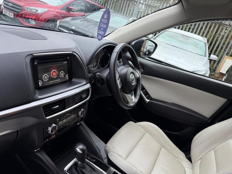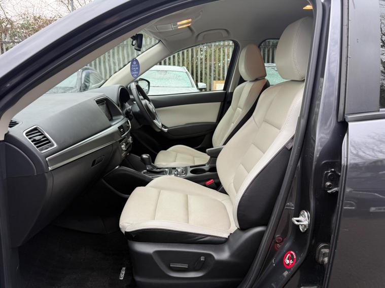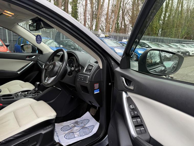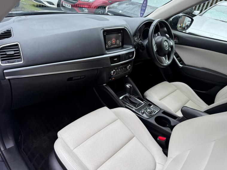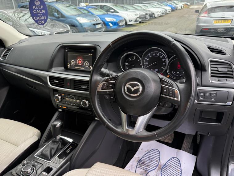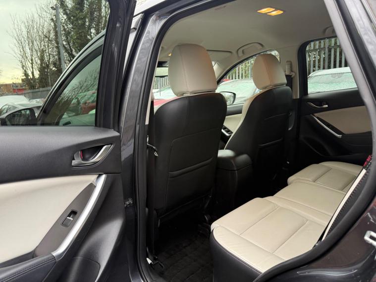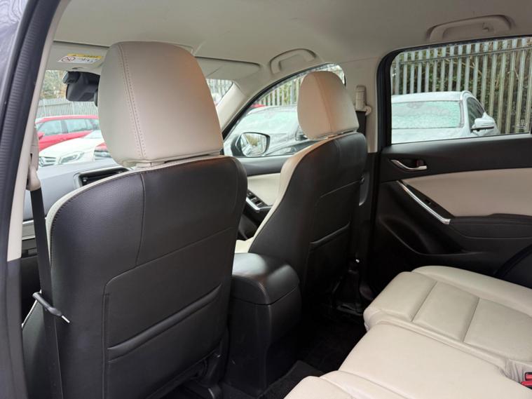 GREY, FINANCE AVAILABLE, REVERSE CAMERA, REAR PARKING SENSORS, LEATHER AND HEATED SEATS, ONLY ONE OWNER, PRIVACY GLASS, ULEZ COMPLIANTWARRANTED AND VARIFIABLE LOW MILEAGE WITH IMPORTED DOCUMENTS.This 2015 Mazda CX-5 SKYACTIV-D SE-L Nav presents an exceptional opportunity with its remarkably low mileage of just 60, 410 miles for its age. This Euro 6 compliant 2.2 litre diesel engine ensures efficient performance, and with an MOT valid until November 2026, you can drive with confidence. The SE-L Nav trim level comes equipped with a host of convenient features, including an integrated Bluetooth system for seamless connectivity, rear and front parking sensors to aid manoeuvrability, and dusk sensing automatic headlights for enhanced visibility. Inside, you'll appreciate the dual zone climate control, ensuring comfort for all occupants.The appeal of this Mazda CX-5 is further enhanced by its impressive fuel economy, achieving a notable 53 miles per gallon, which indicates it is more economical than many similar vehicles. Its low insurance group also suggests lower running costs, making it a sensible choice. Furthermore, the generous boot space offers practicality for everyday needs and longer journeys, highlighting its versatility compared to other SUVs in its class..